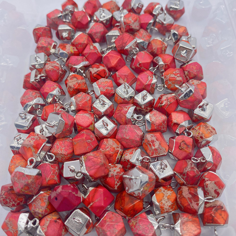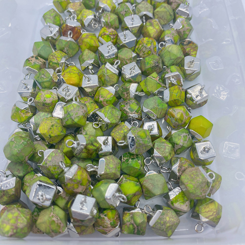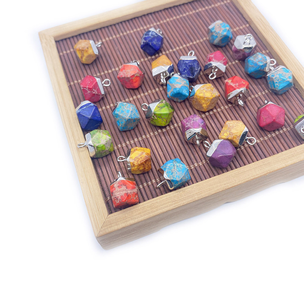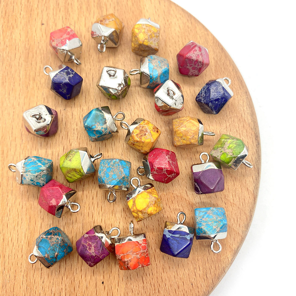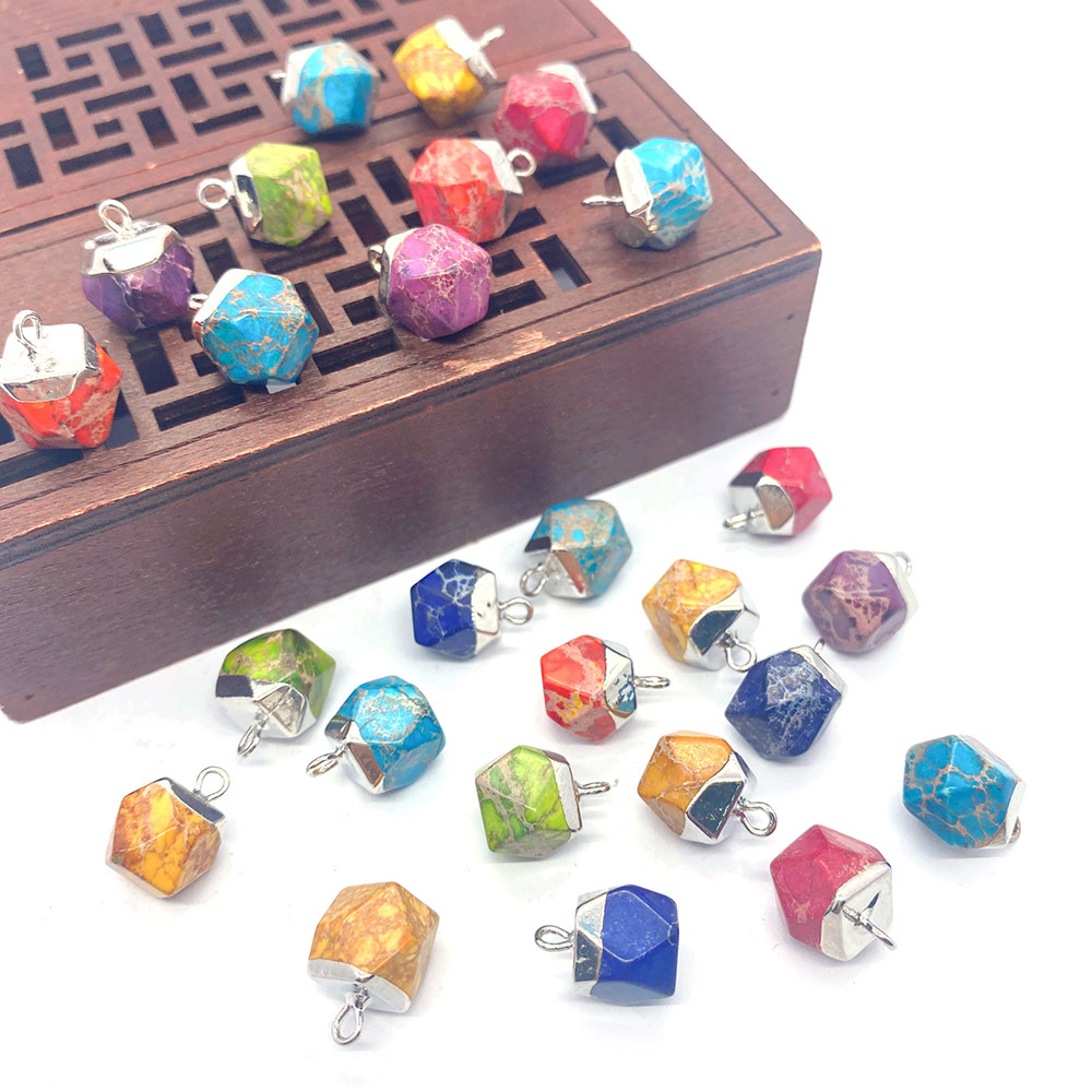 Turkis vedhæng, Hexagon, sølvfarvet forgyldt, du kan DIY, flere farver til valg, 9x13mm, Solgt af PC