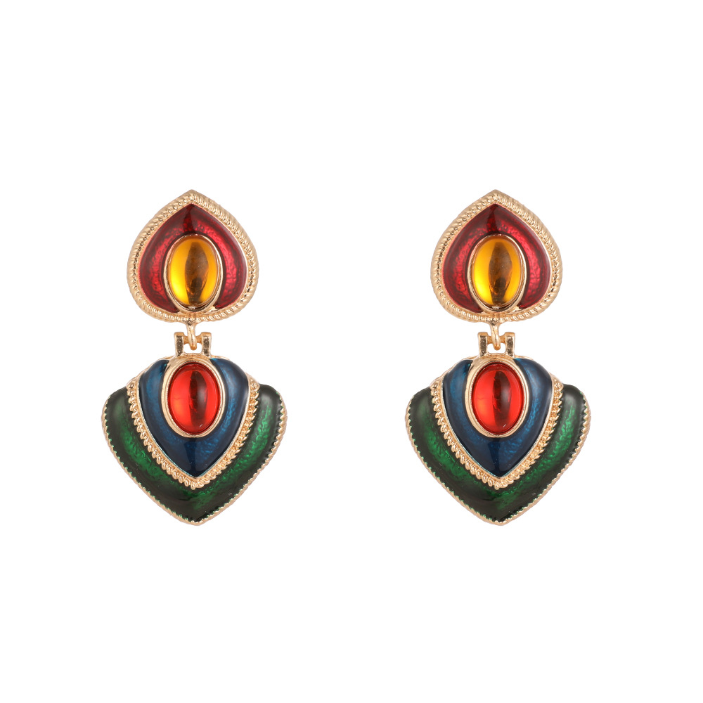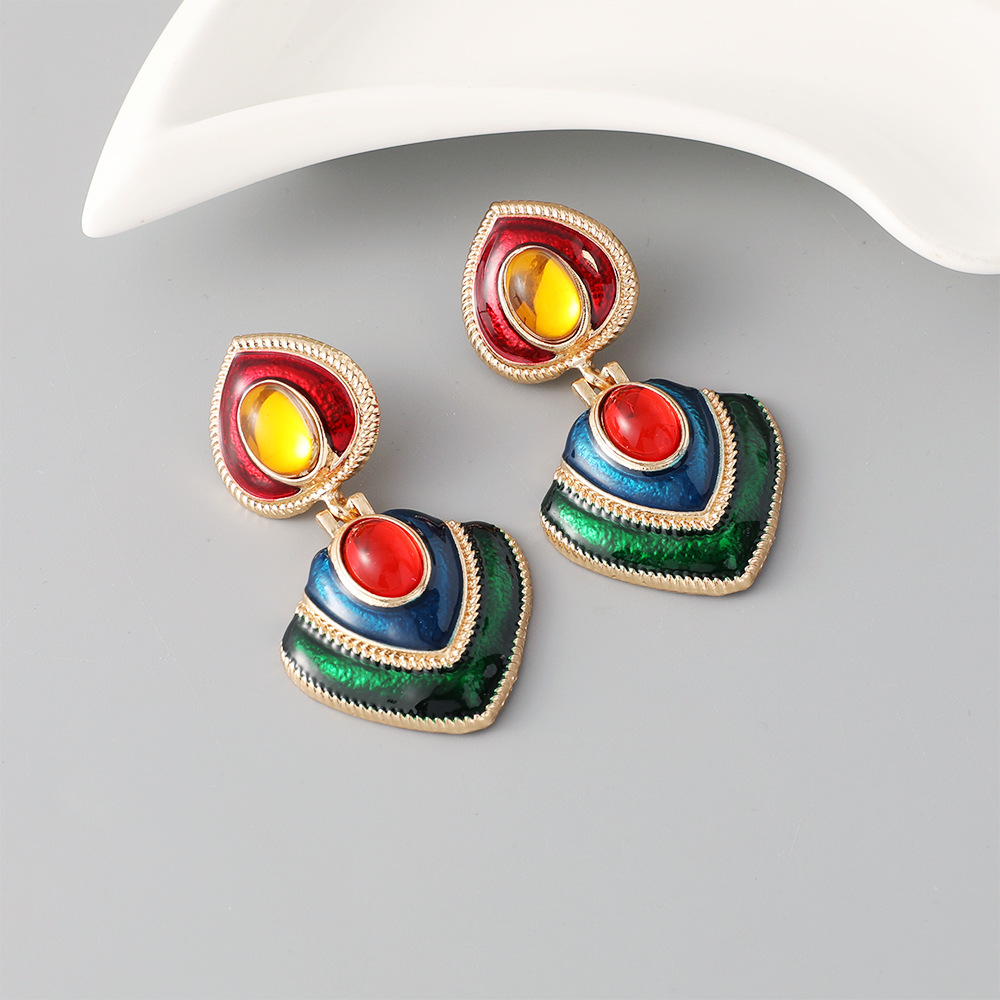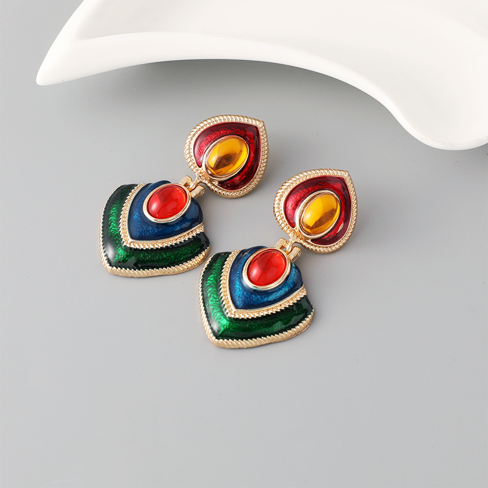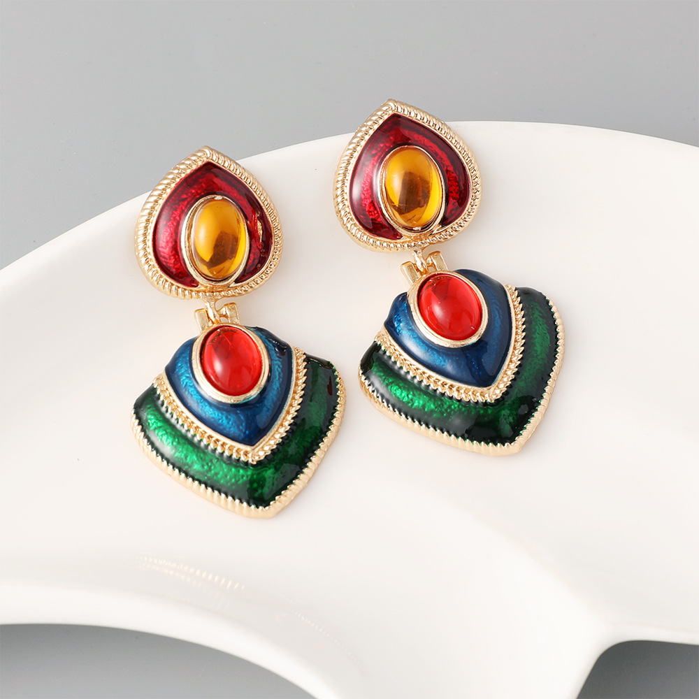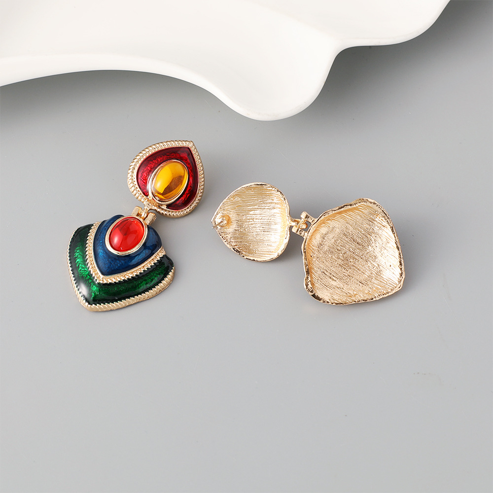 Zinc Alloy Drop Earring, Geometrisk mønster, guldfarve belagt, for kvinde & emalje, Solgt af par