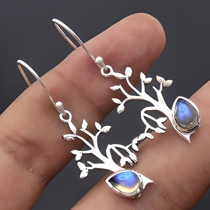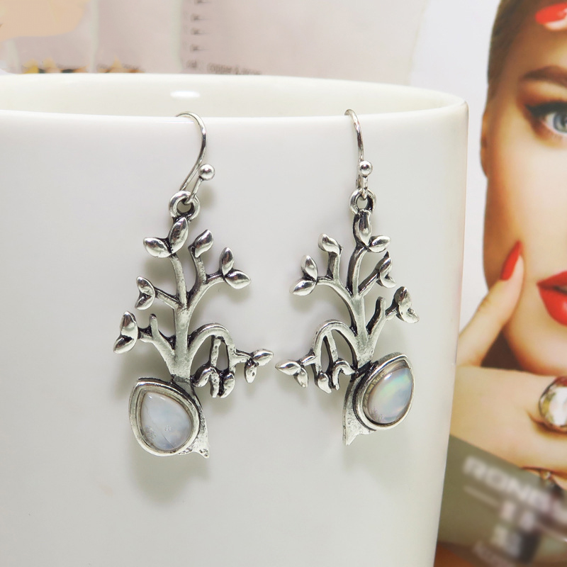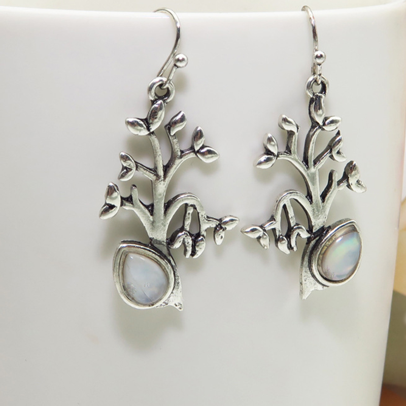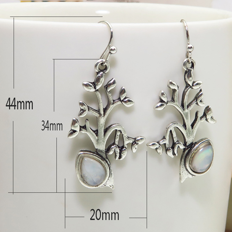 Zinc Alloy Drop Earring, med Månesten, Tree, antik sølv farve forgyldt, mode smykker & for kvinde, 20x44mm, Solgt af par