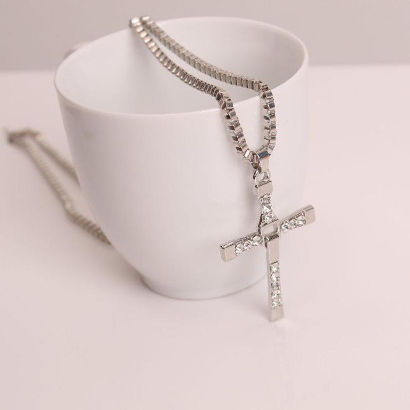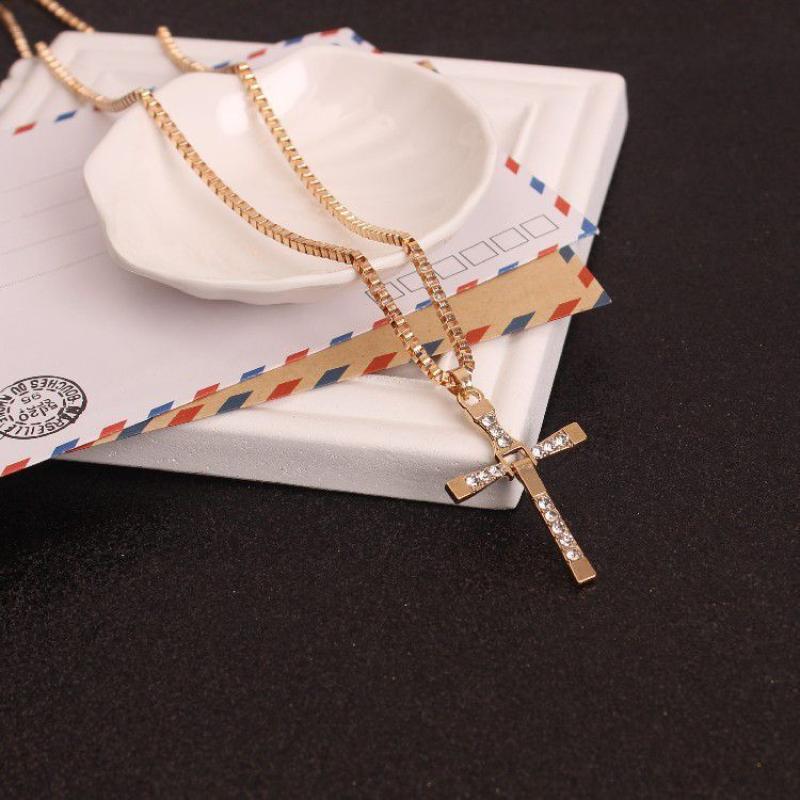 Zinc Alloy Halskæde, Kryds, forgyldt, for mennesket & med rhinestone, flere farver til valg, Længde Ca. 18 inch, Solgt af PC