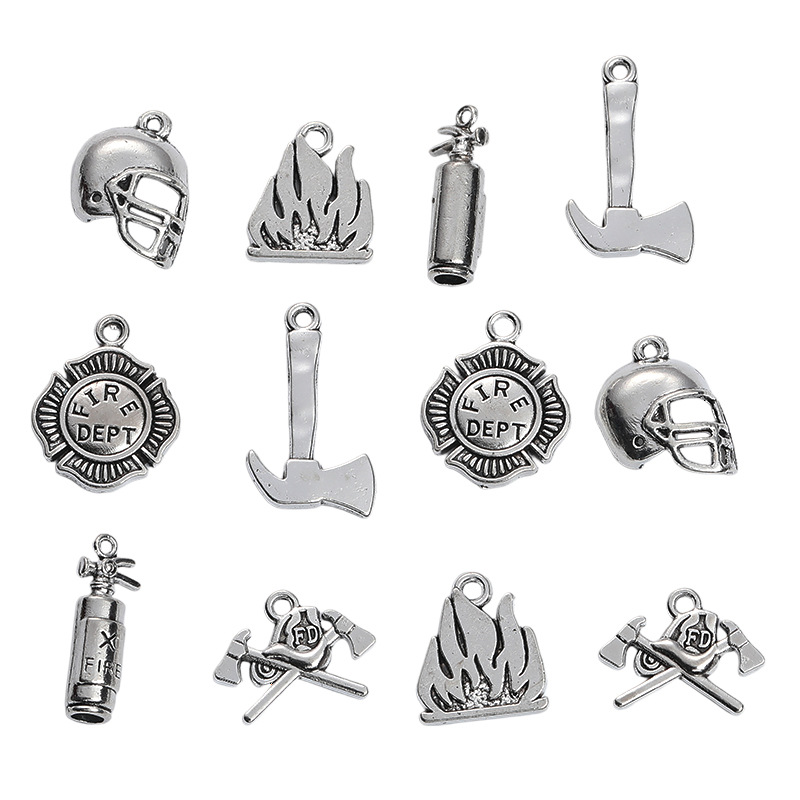 1:Mask 20x14.5mm2:Flame 18x15.5mm3:Fire extinguisher 23x6.5mm4:Ax head 27.5x15mm5:Badge 22.5x18mm6:Fire ax head 15x20mm