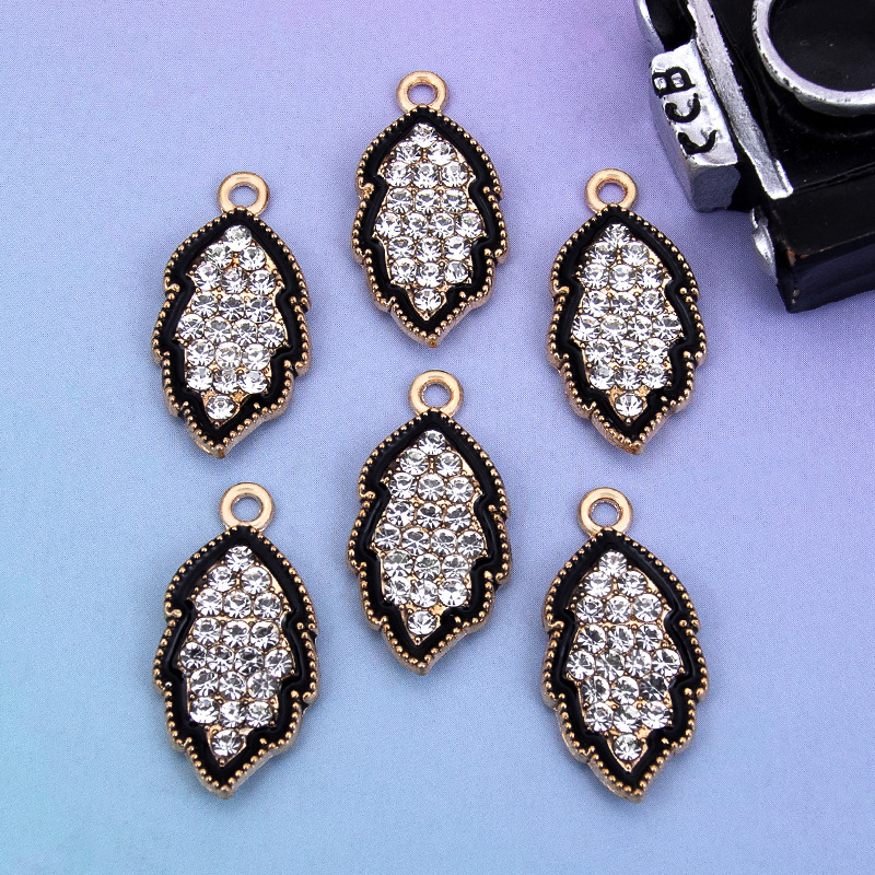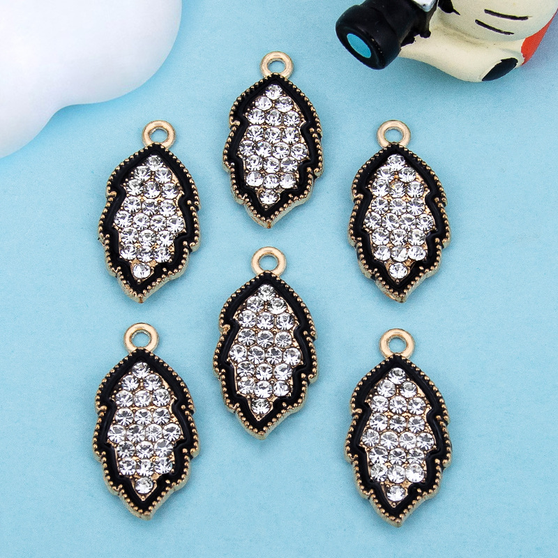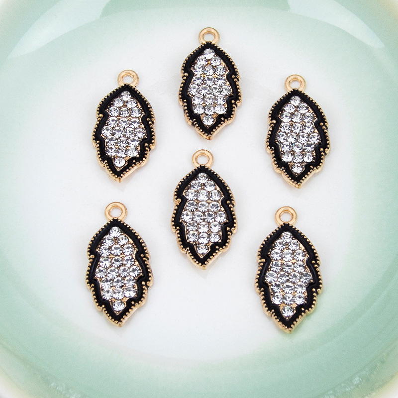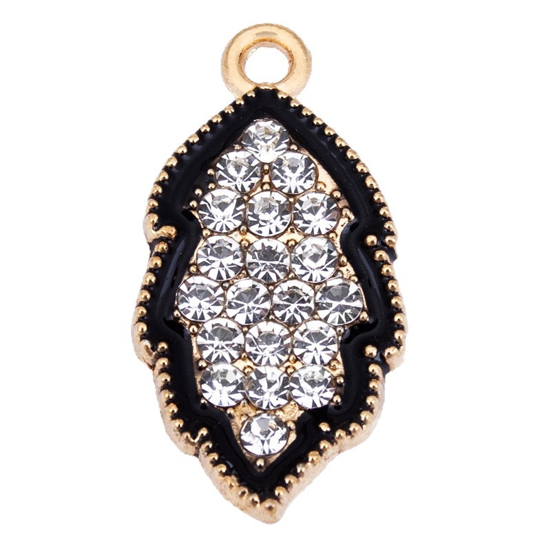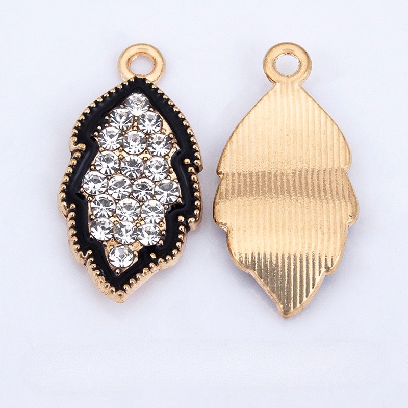Zinc Alloy Rhinestone Pendler, Leaf, guldfarve belagt, du kan DIY & emalje & med rhinestone, sort, 12x23mm, Solgt af PC