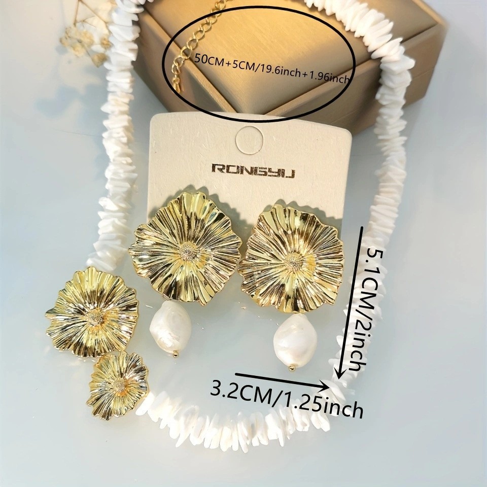 Zink legering Smykke sæt, ørering & halskæde, Zinc Alloy, med Shell, forgyldt, mode smykker, blandede farver, Længde 55 cm, Solgt af sæt