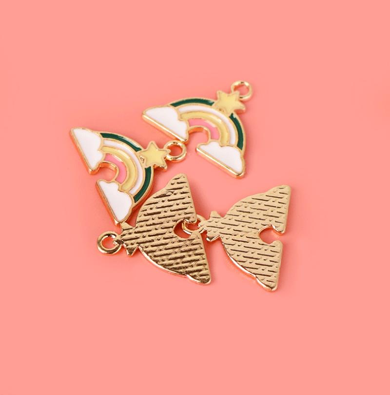 Zink legering emalje vedhæng, Zinc Alloy, Rainbow, forgyldt, du kan DIY, blandede farver, 100pc'er/Bag, Solgt af Bag