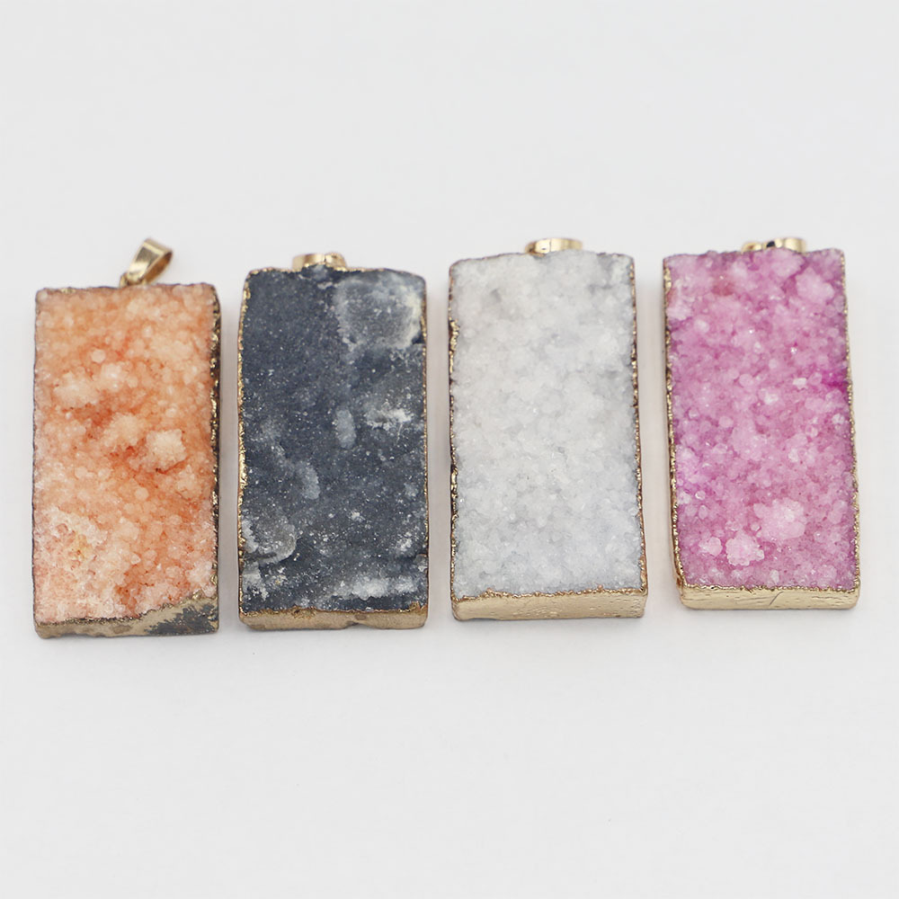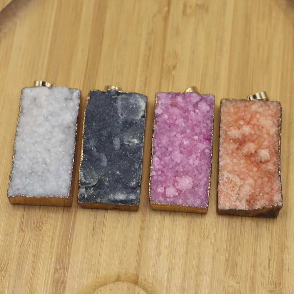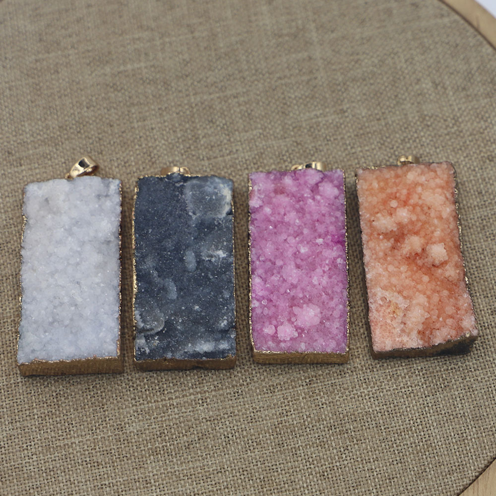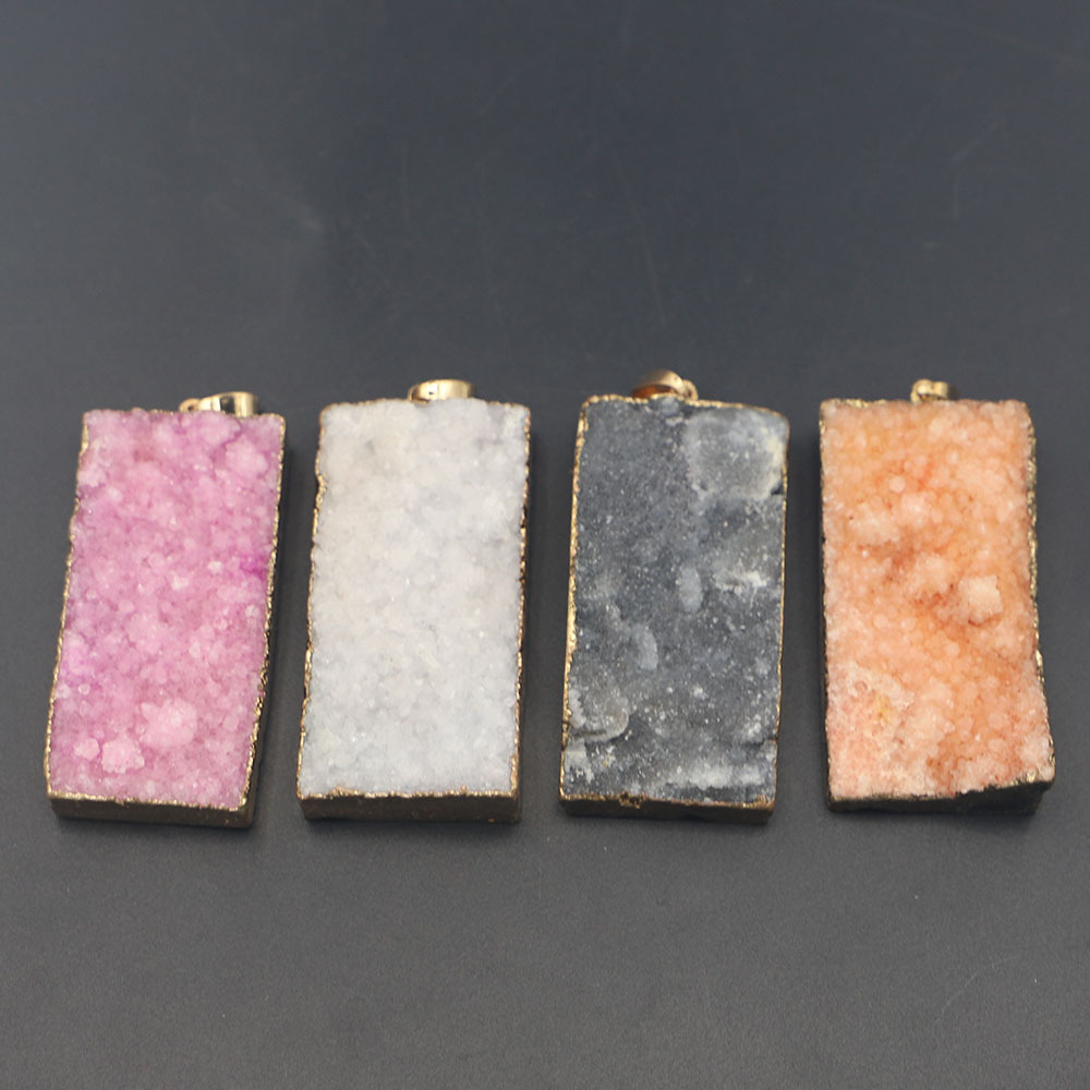 Ice Quartz Agate Pendel, med Messing, Square, du kan DIY, flere farver til valg, 52x26x15mm, Solgt af PC