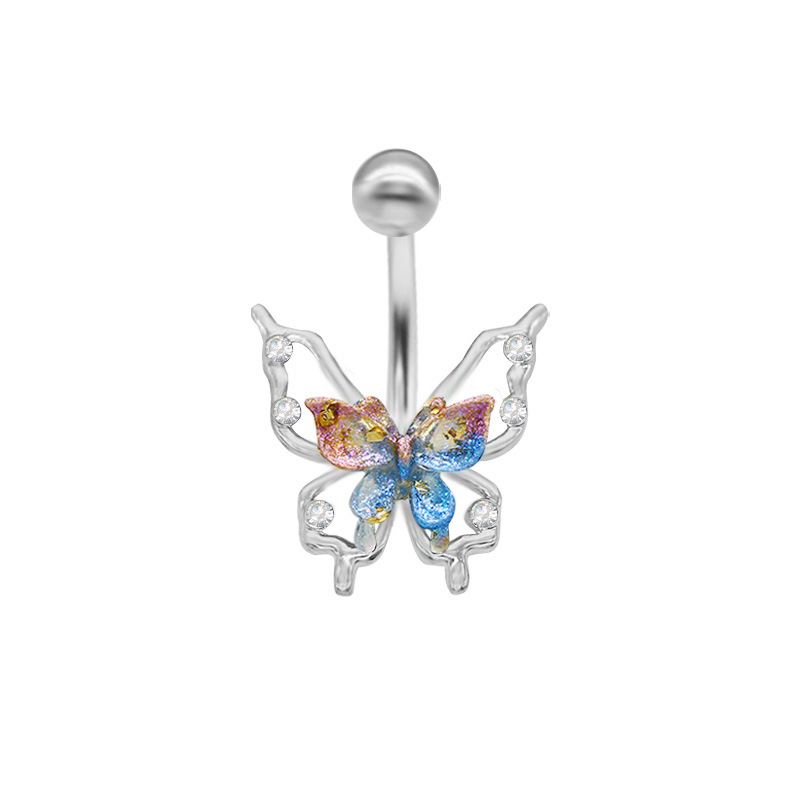 Zinc Alloy mave ring, med Resin, Butterfly, forgyldt, Unisex & med rhinestone & hule, flere farver til valg, Solgt af PC