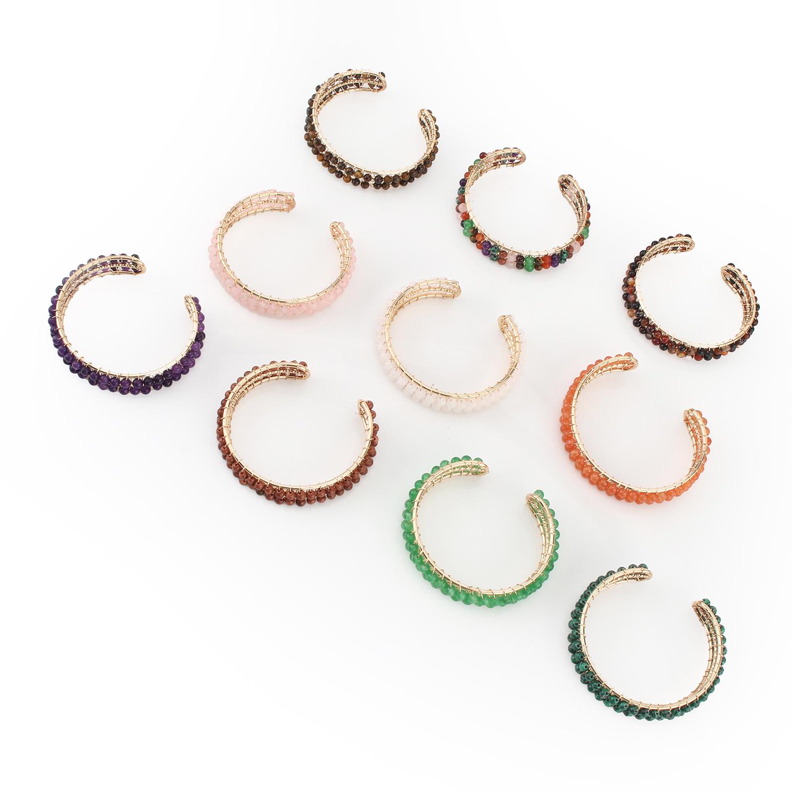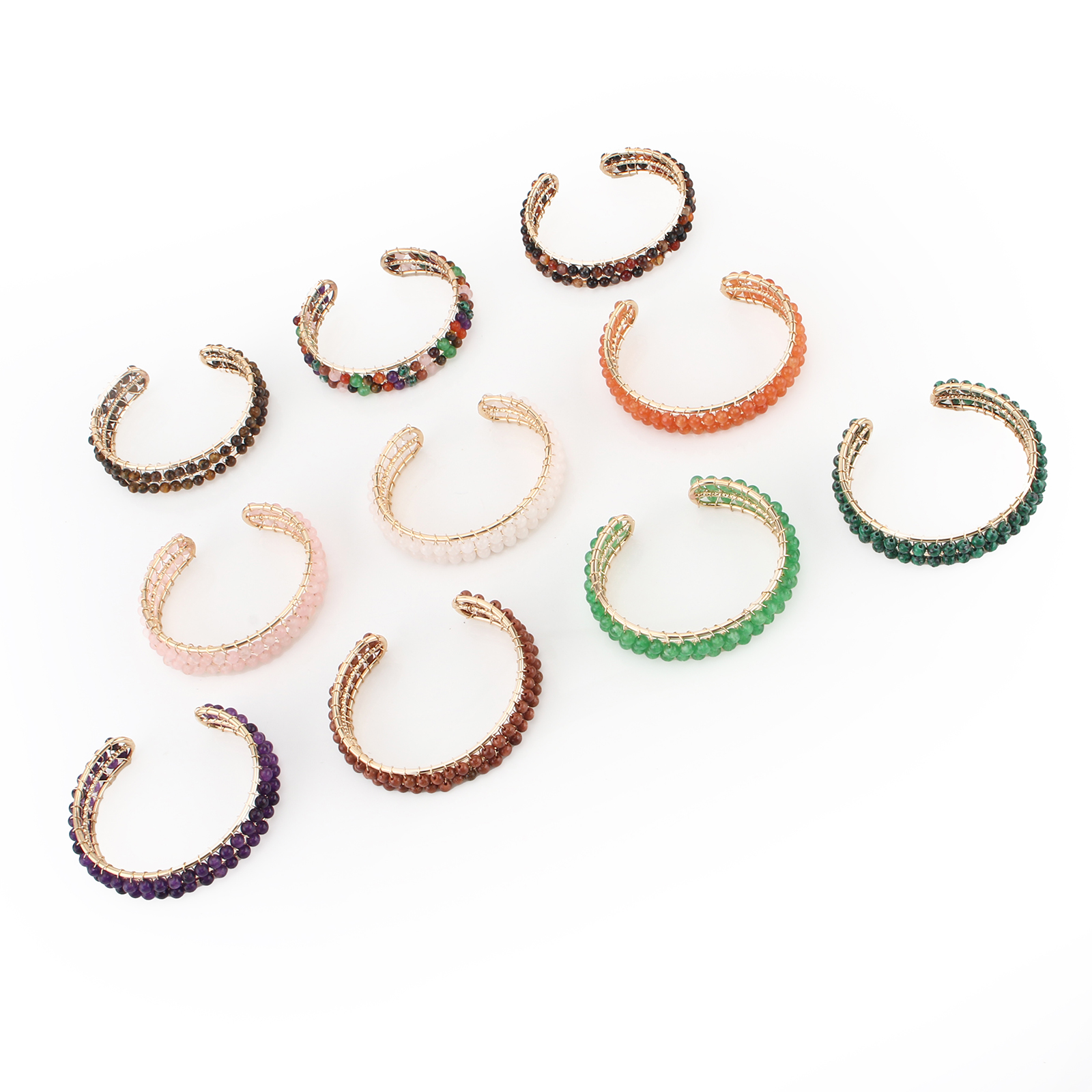 Ædelsten Cuff Bangle, med Messing, forgyldt, mode smykker & for kvinde, flere farver til valg, 54x69x14mm, Solgt af PC