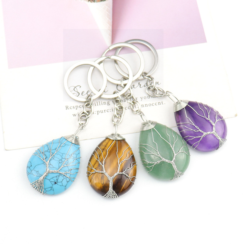 Ædelsten Key Lås, med Messing, Teardrop, håndlavet, forskellige materialer til valg & Unisex, gemstone size 30x40mm, Solgt af PC