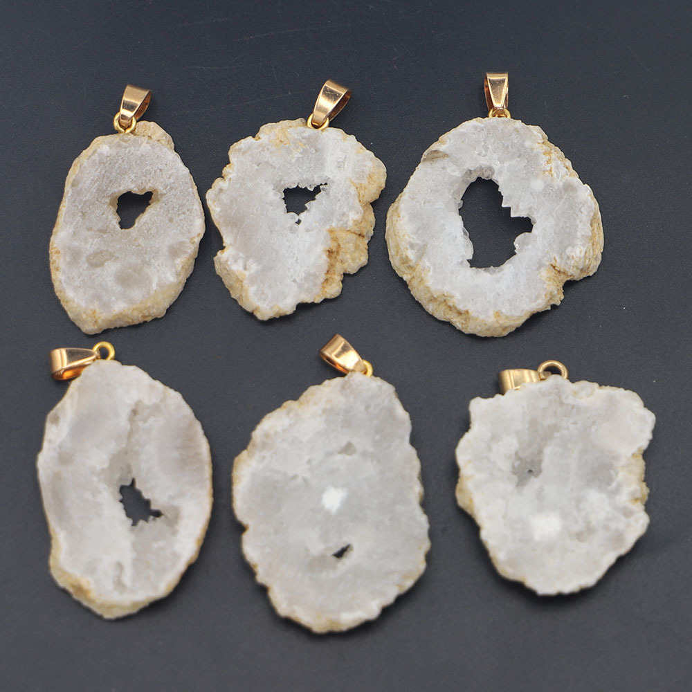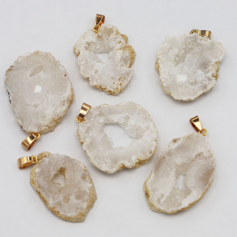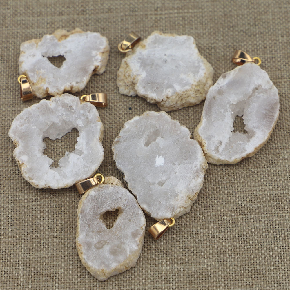 Clear Quartz Pendel, med Messing, Uregelmæssig, forgyldt, du kan DIY, hvid, 40x35x25mm, Solgt af PC