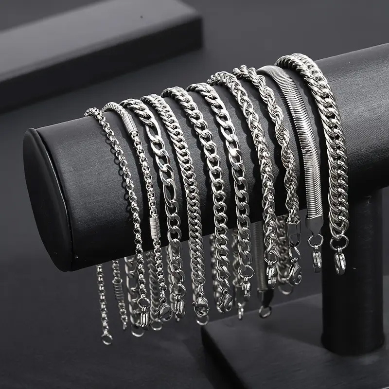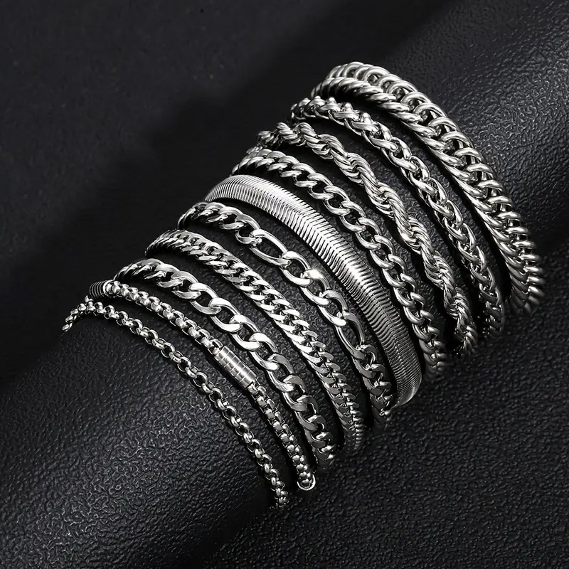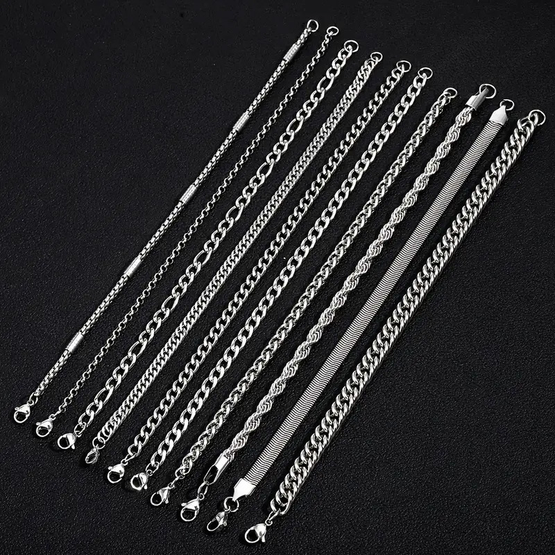 304 Edelstahl Armband-Set, 10 Stück & Modeschmuck & für den Menschen, originale Farbe, Länge ca. 8.27 ZollInch, verkauft von PC
