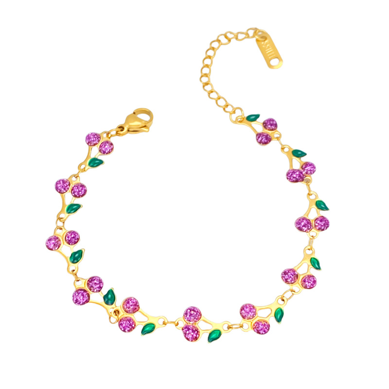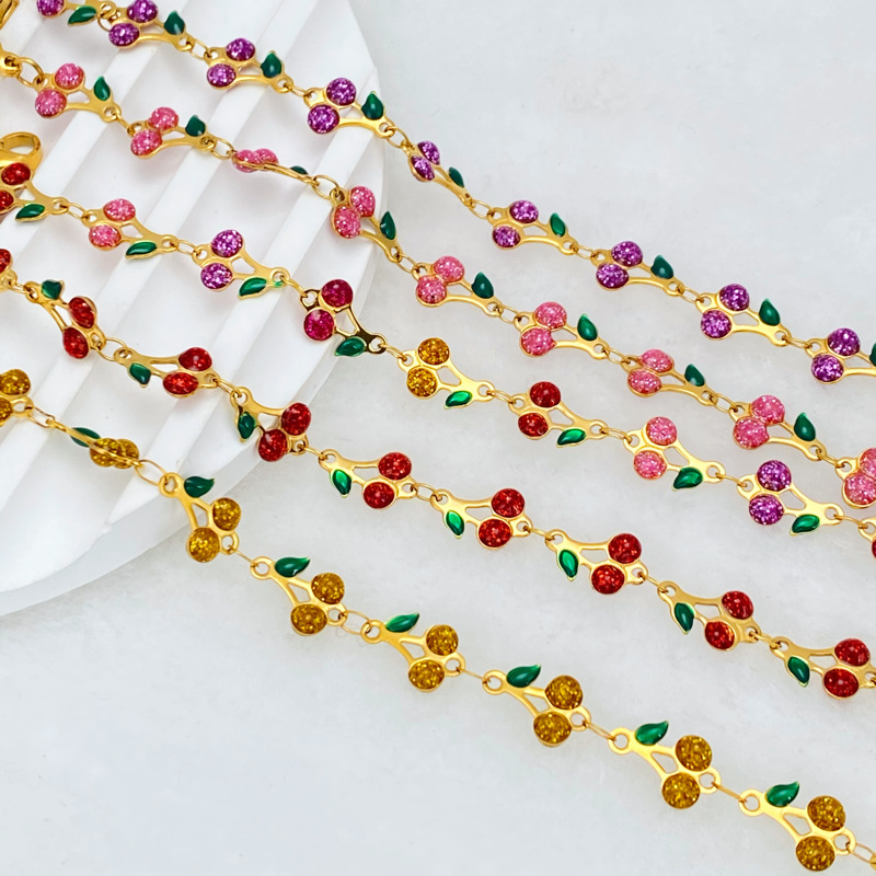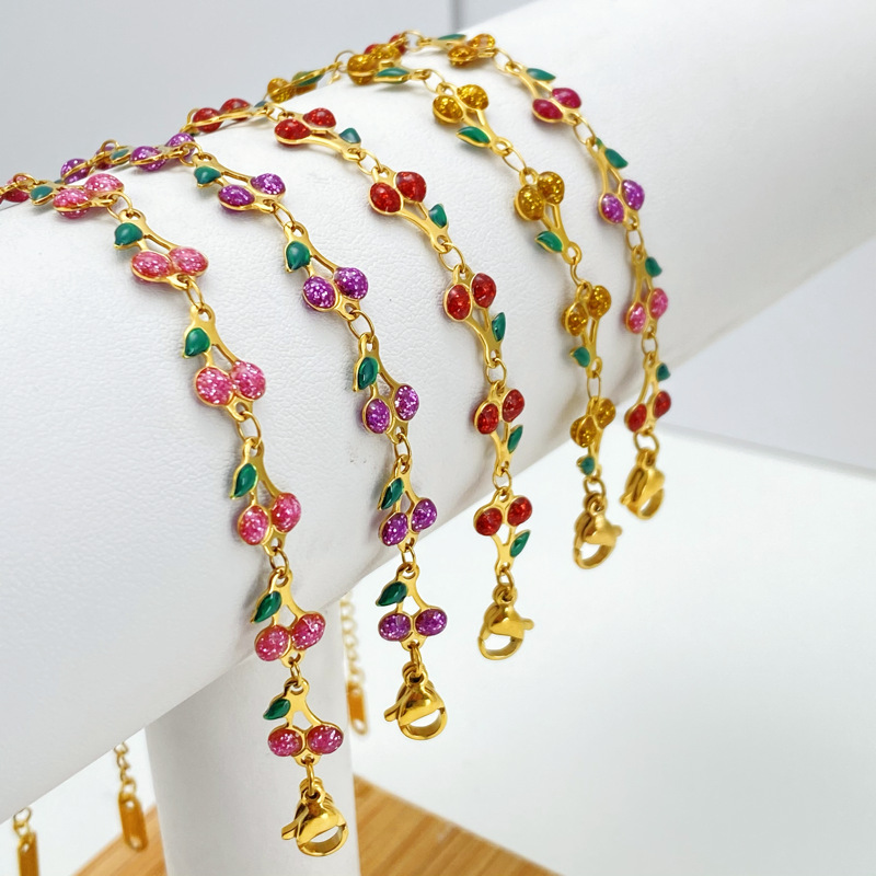 304 Edelstahl Armband, mit Verlängerungskettchen von 5cm, Kirsche, plattiert, Modeschmuck & für Frau & Emaille, keine, Länge ca. 17 cm, verkauft von PC
