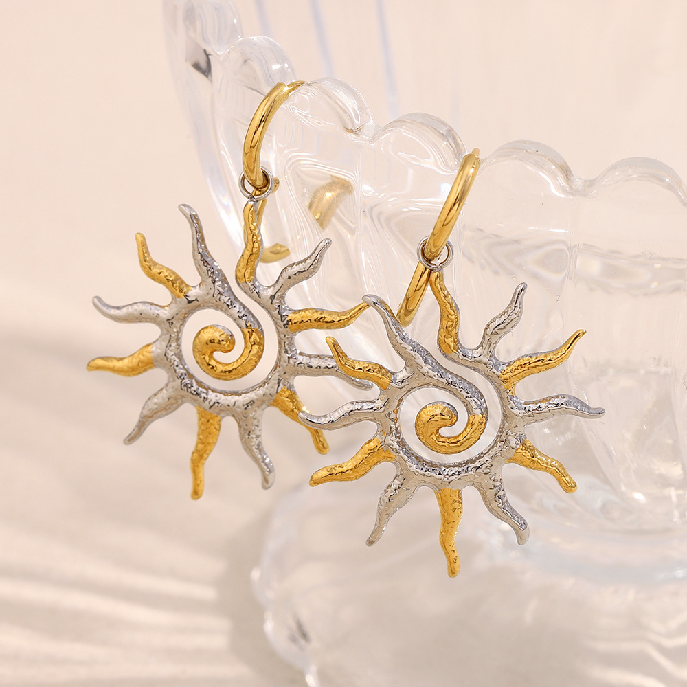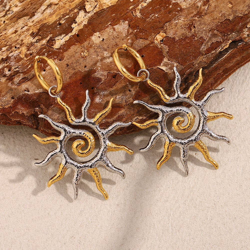 304 Edelstahl Huggie Hoop Ohrhänger, Sonne, plattiert, Modeschmuck & für Frau, 34x51.20mm, verkauft von Paar