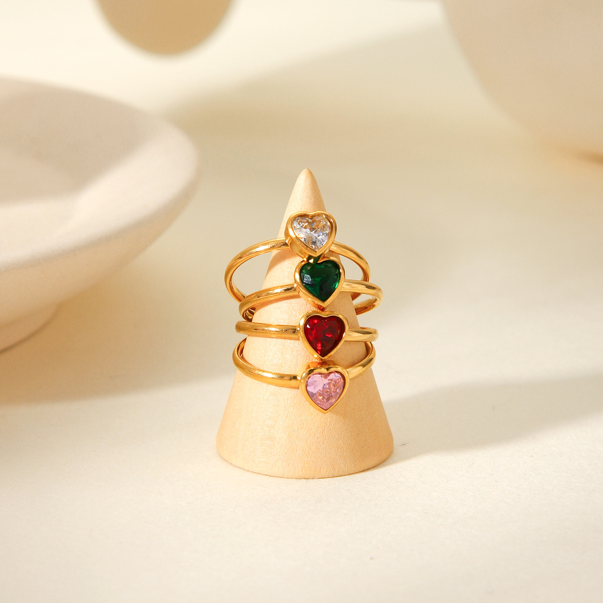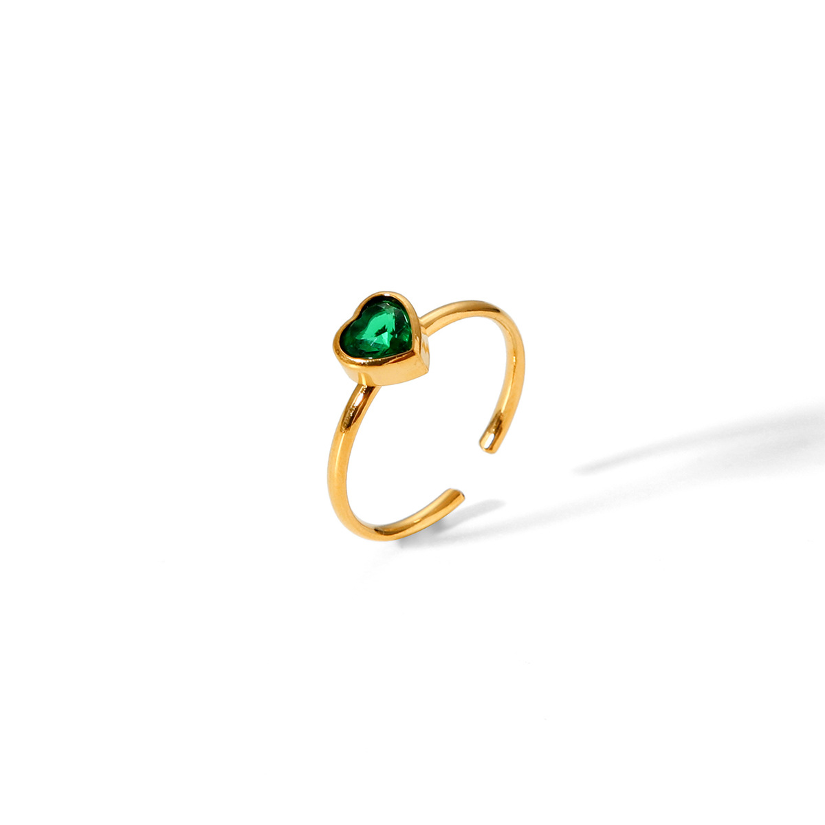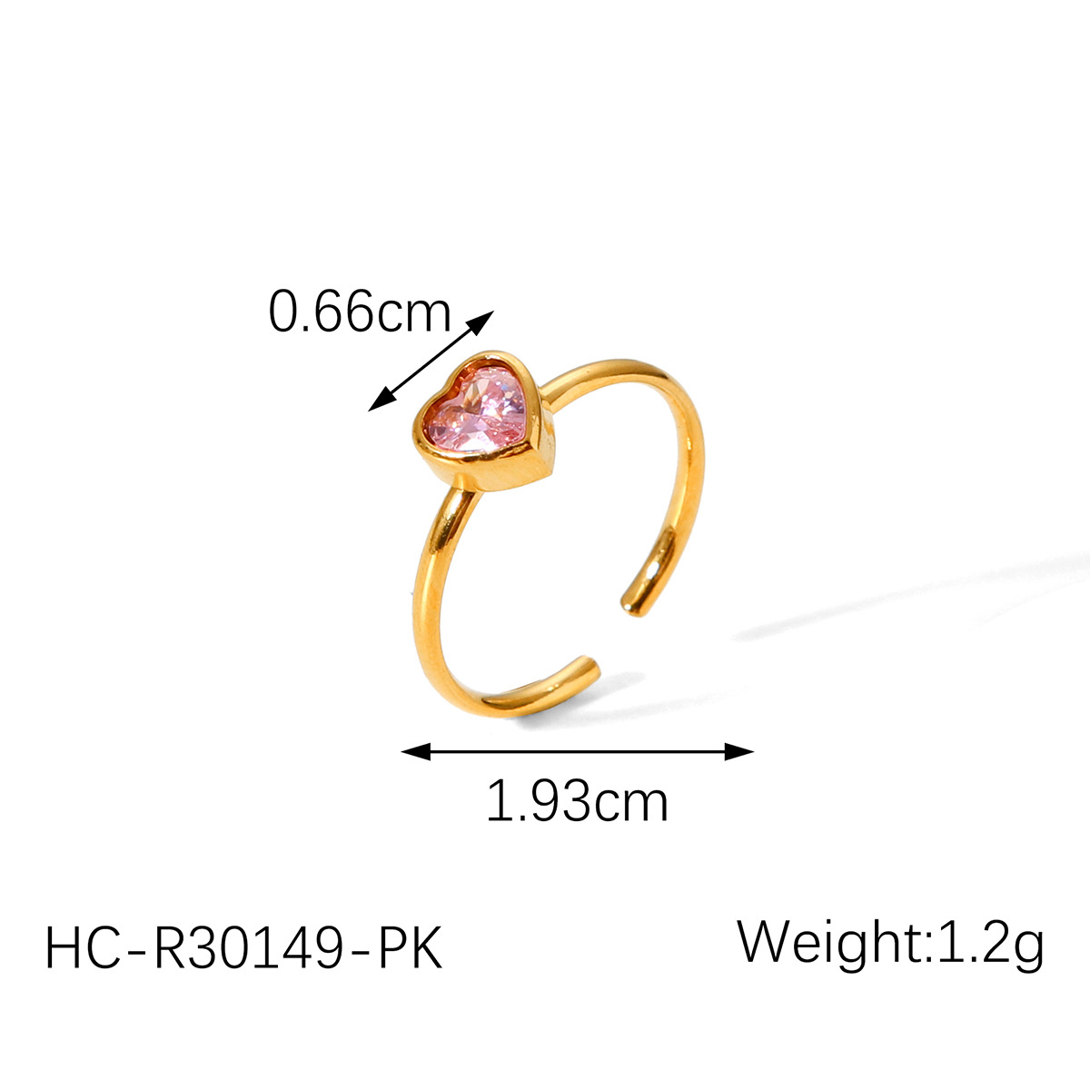 304 Edelstahl Manschette Fingerring, Herz, goldfarben plattiert, für Frau & mit Strass, keine, verkauft von PC