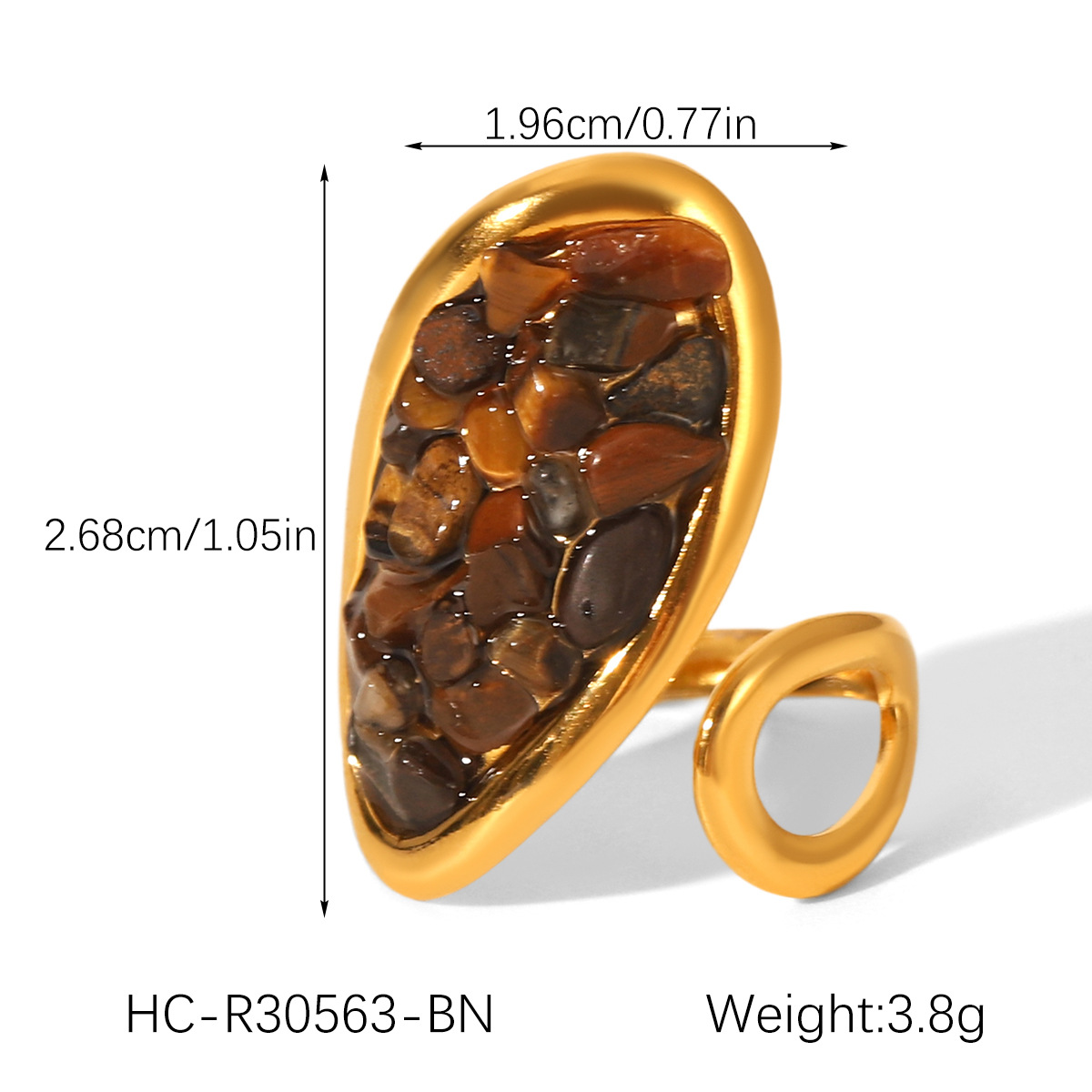 Edelstein Fingerring, 304 Edelstahl, mit Edelstein, goldfarben plattiert, Einstellbar & für Frau, keine, verkauft von PC