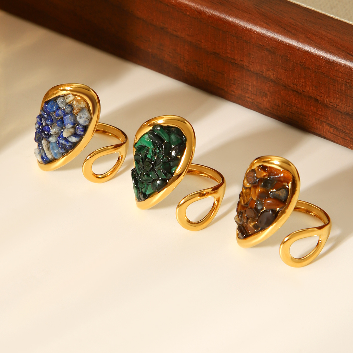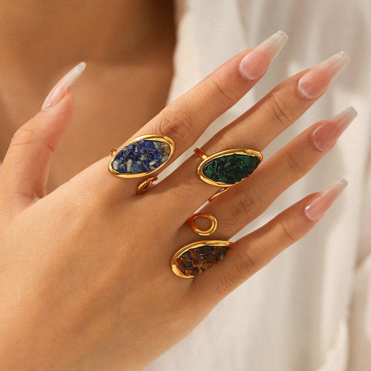 Edelstein Fingerring, 304 Edelstahl, mit Naturstein, goldfarben plattiert, Modeschmuck & verschiedenen Materialien für die Wahl & unisex, keine, verkauft von PC