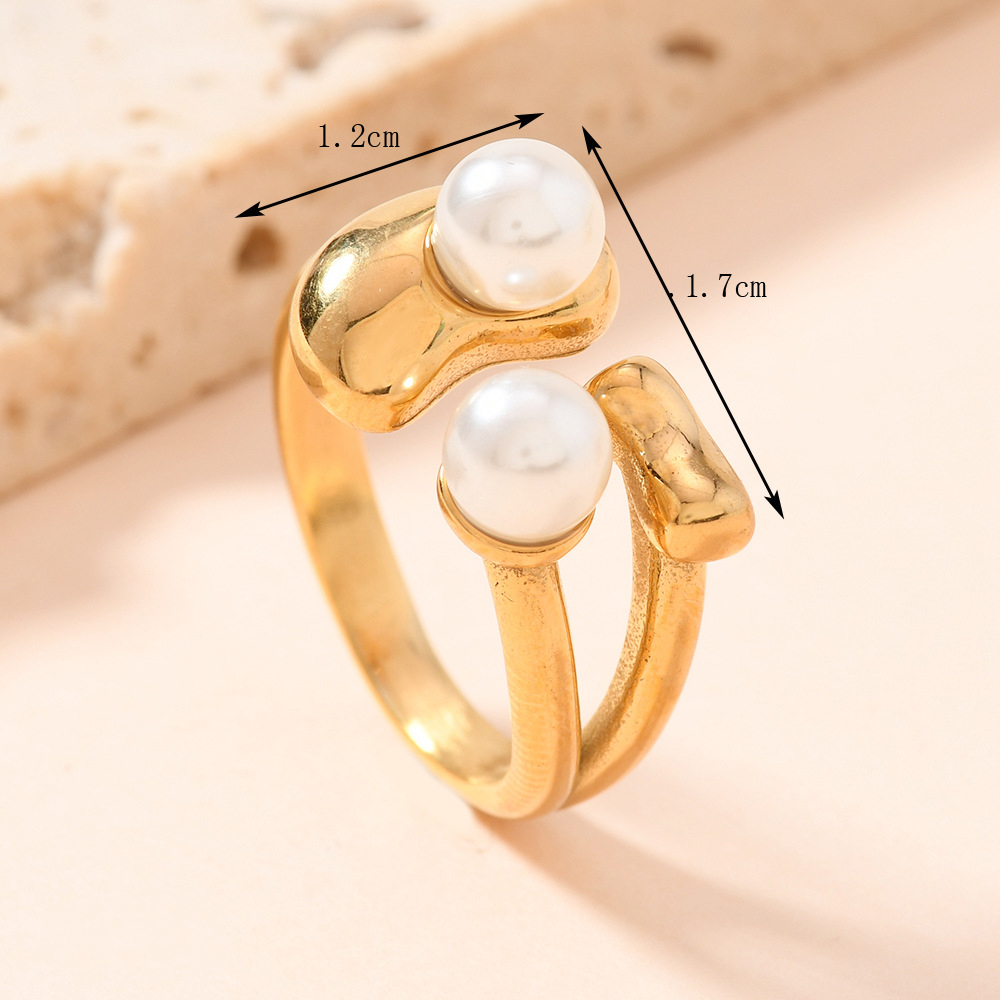 304 Edelstahl Manschette Fingerring, mit Kunststoff Perlen, goldfarben plattiert, verschiedene Stile für Wahl & für Frau, Größe:8, verkauft von PC