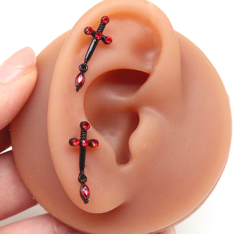 304 Edelstahl Nasepiercing Schmuck, Kreuz, plattiert, unisex & Micro pave Zirkonia, schwarz, 21mm, verkauft von PC