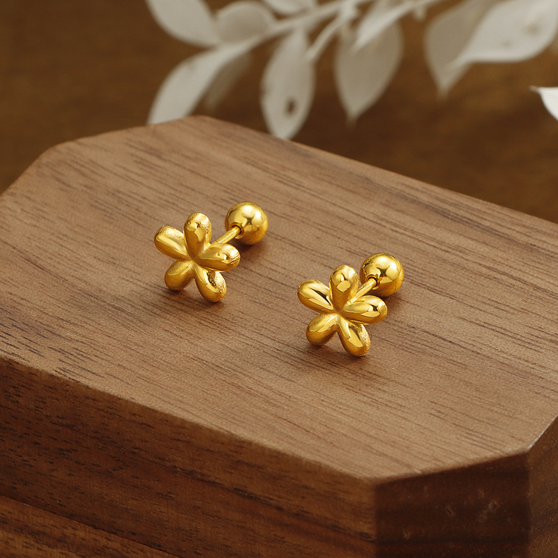 304 Edelstahl Ohrstecker, Blume, goldfarben plattiert, Modeschmuck & für Frau, 8mm, verkauft von Paar