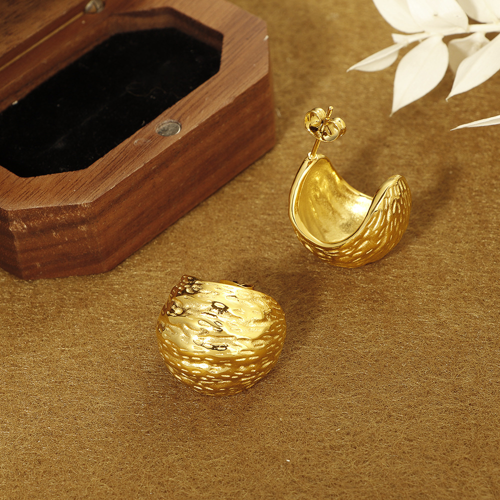 Edelstahl Ohrringe, 304 Edelstahl, plattiert, Modeschmuck & für Frau & hohl, goldfarben, verkauft von Paar