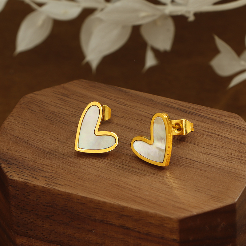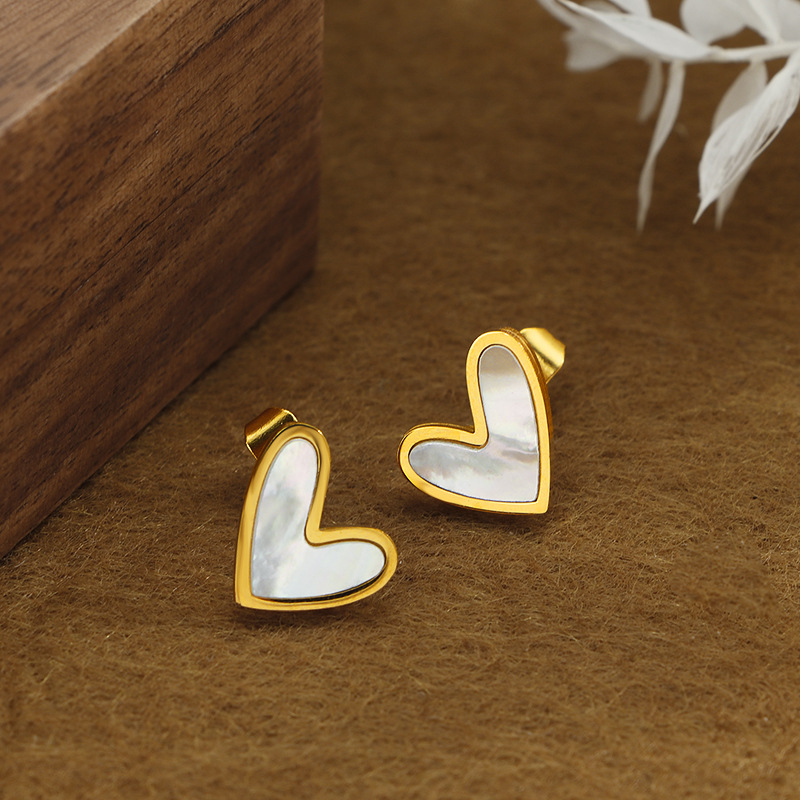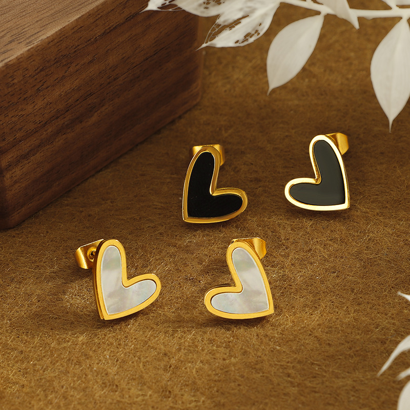 304 Edelstahl Ohrstecker, mit Schwarze Muschel & Weiße Muschel, Herz, goldfarben plattiert, Modeschmuck & für Frau, keine, 11mm, verkauft von Paar