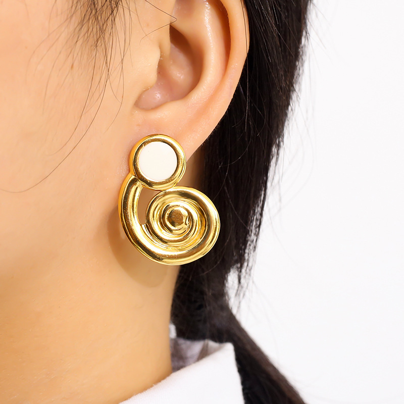 Edelstahl Ohrringe, 304 Edelstahl, plattiert, Modeschmuck & für Frau & hohl, goldfarben, verkauft von Paar