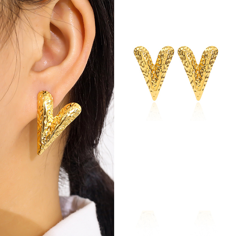 Edelstahl Ohrringe, 304 Edelstahl, plattiert, Modeschmuck & für Frau & hohl, goldfarben, verkauft von Paar