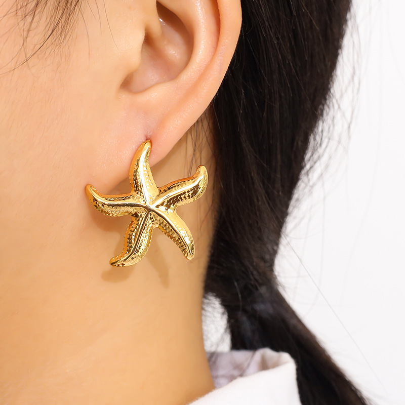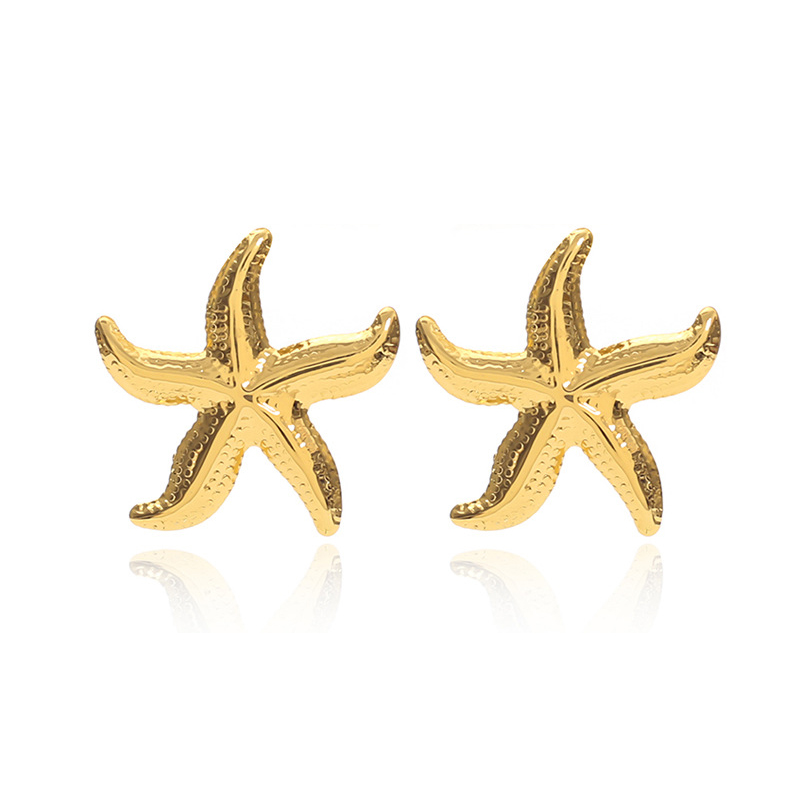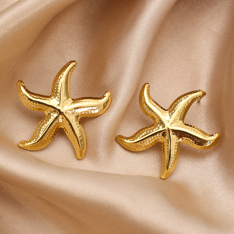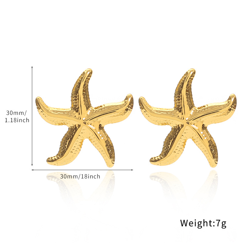 304 Edelstahl Ohrstecker, Seestern, goldfarben plattiert, Modeschmuck & für Frau, 30x30mm, verkauft von Paar