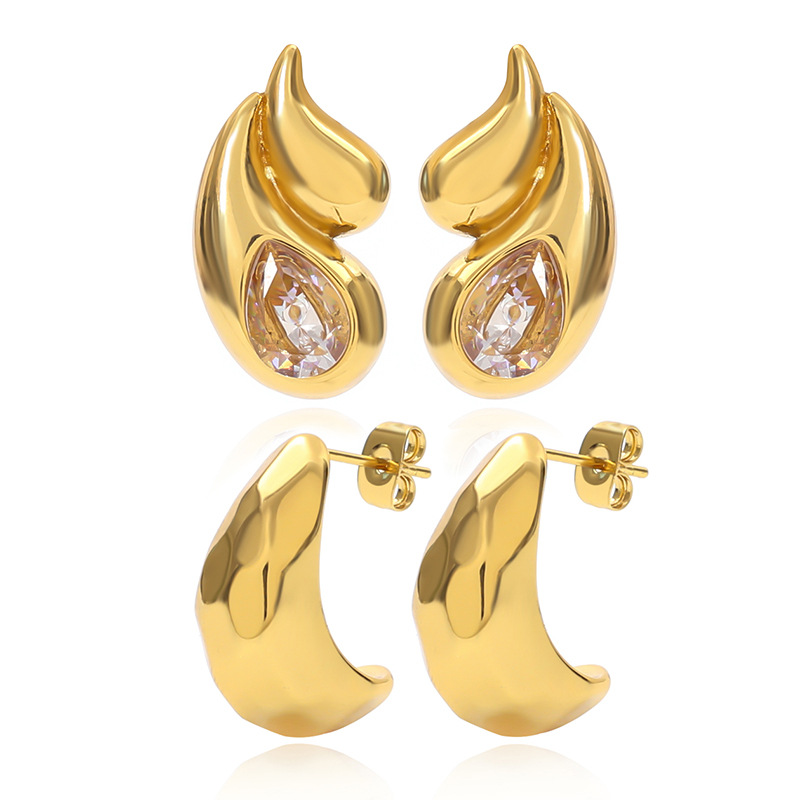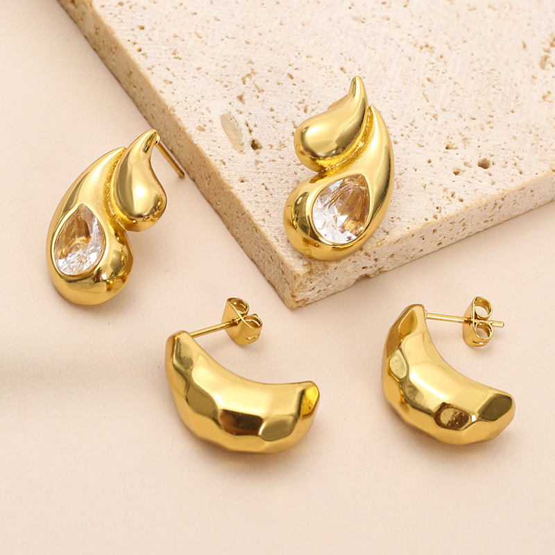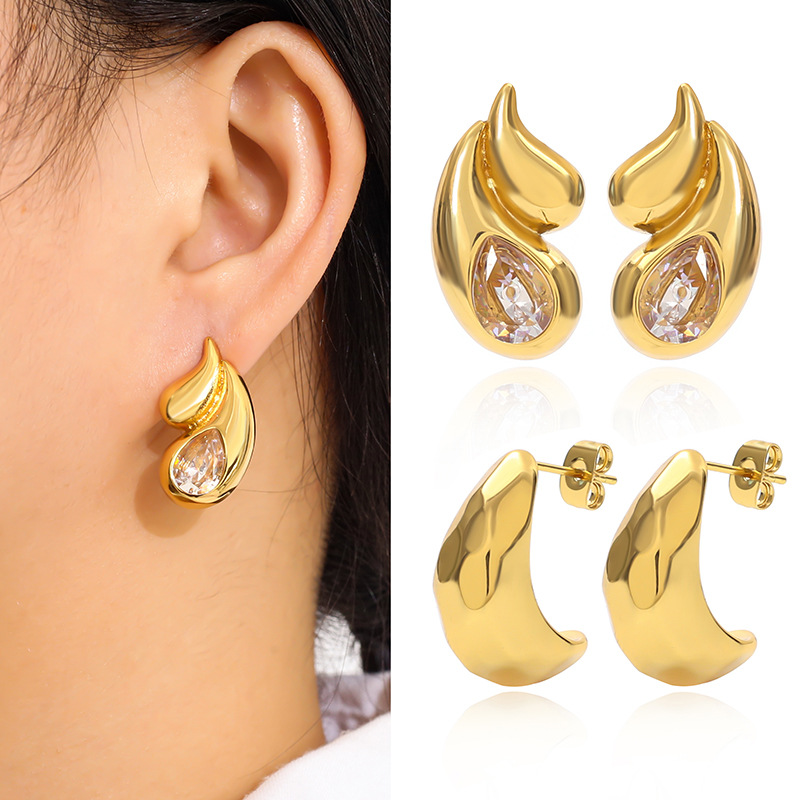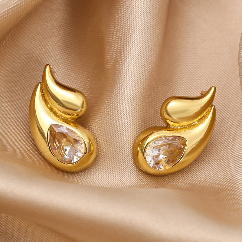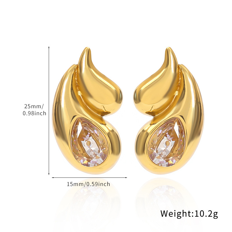 304 Edelstahl Ohrstecker, Tropfen, goldfarben plattiert, verschiedene Stile für Wahl & Micro pave Zirkonia & für Frau, verkauft von Paar