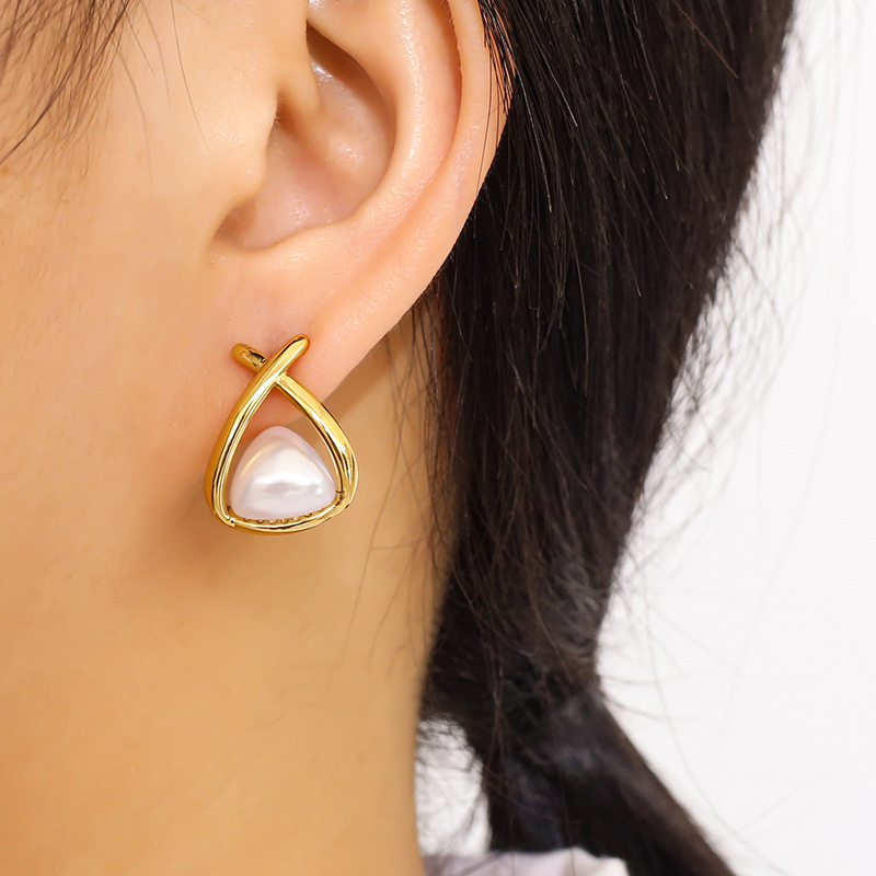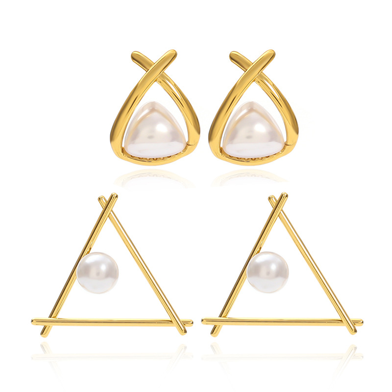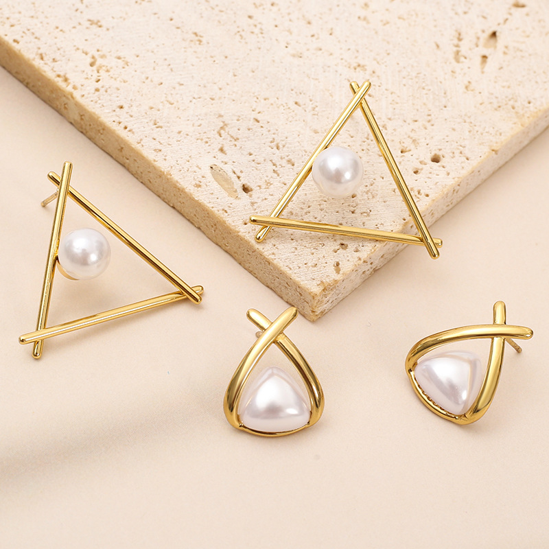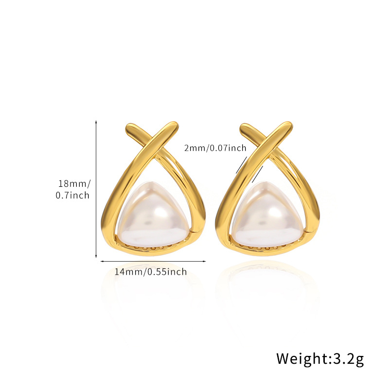 304 Edelstahl Ohrstecker, mit Kunststoff Perlen, Dreieck, goldfarben plattiert, verschiedene Stile für Wahl & für Frau & hohl, verkauft von Paar