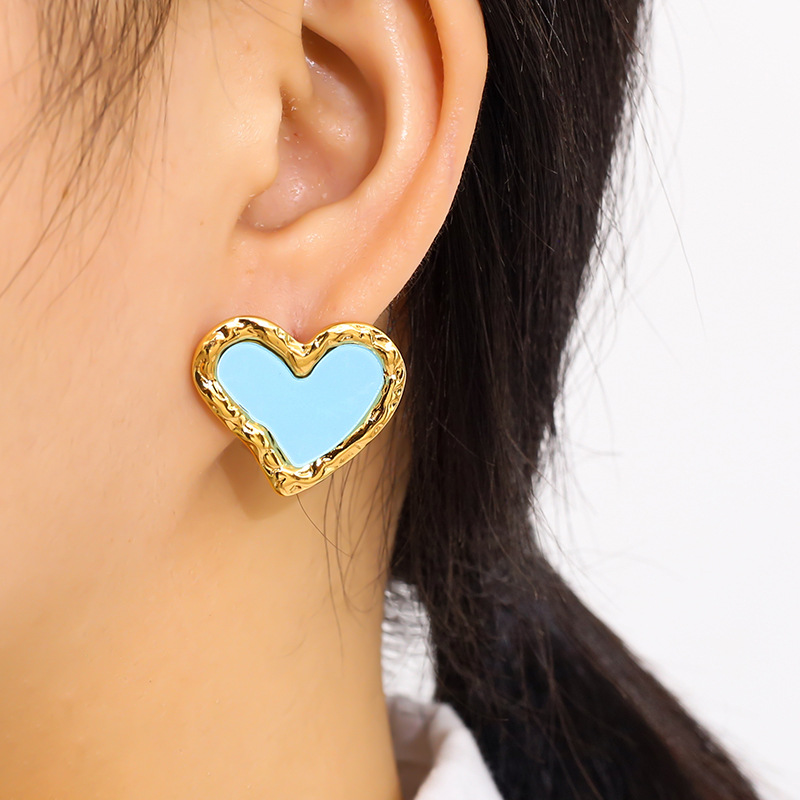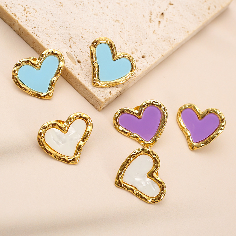 304 Edelstahl Ohrstecker, mit Harz, Herz, goldfarben plattiert, Modeschmuck & für Frau, keine, 23x20mm, verkauft von Paar