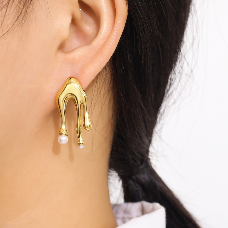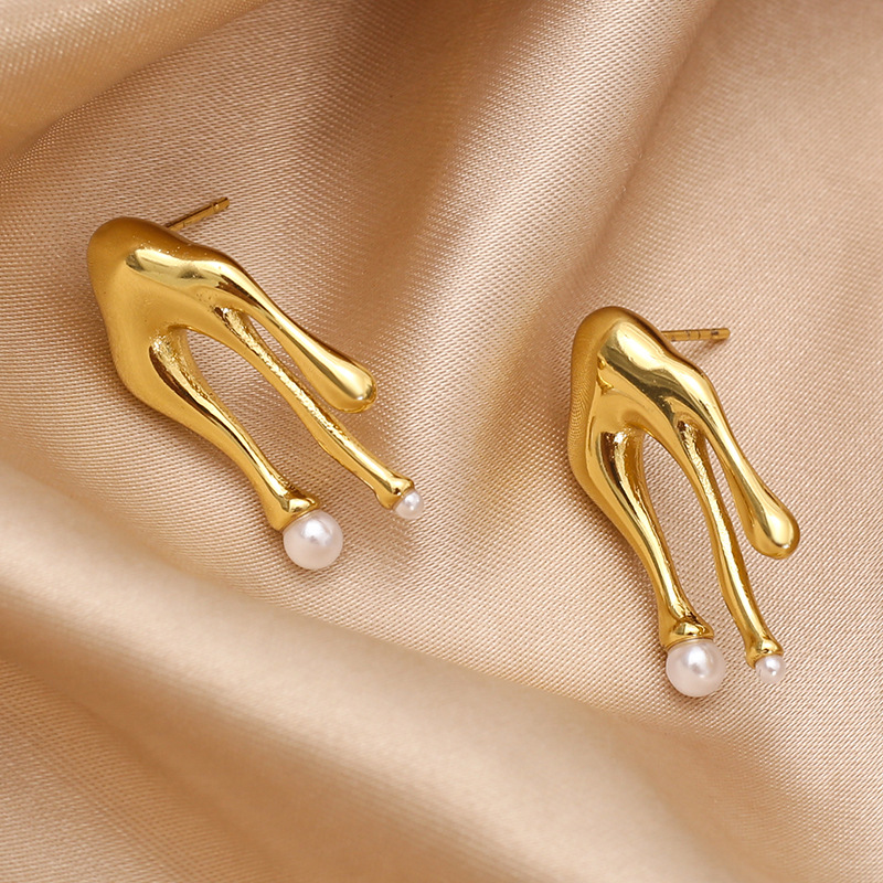Edelstahl Ohrringe, 304 Edelstahl, plattiert, Modeschmuck & für Frau & hohl, goldfarben, verkauft von Paar