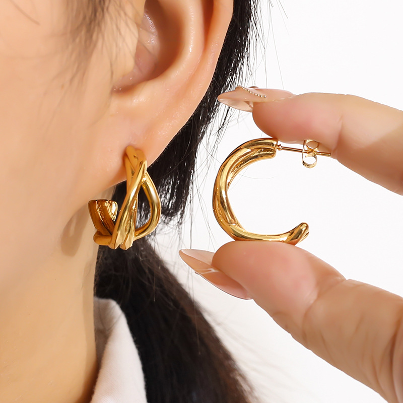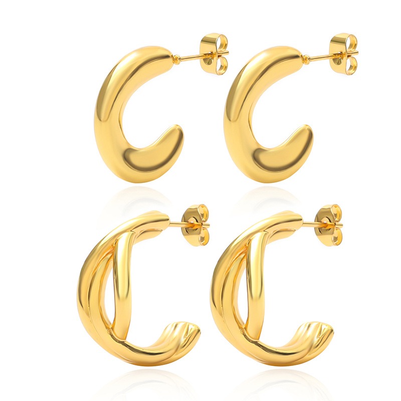 304 Edelstahl Ohrstecker, Buchstabe C, goldfarben plattiert, verschiedene Stile für Wahl & für Frau, verkauft von Paar