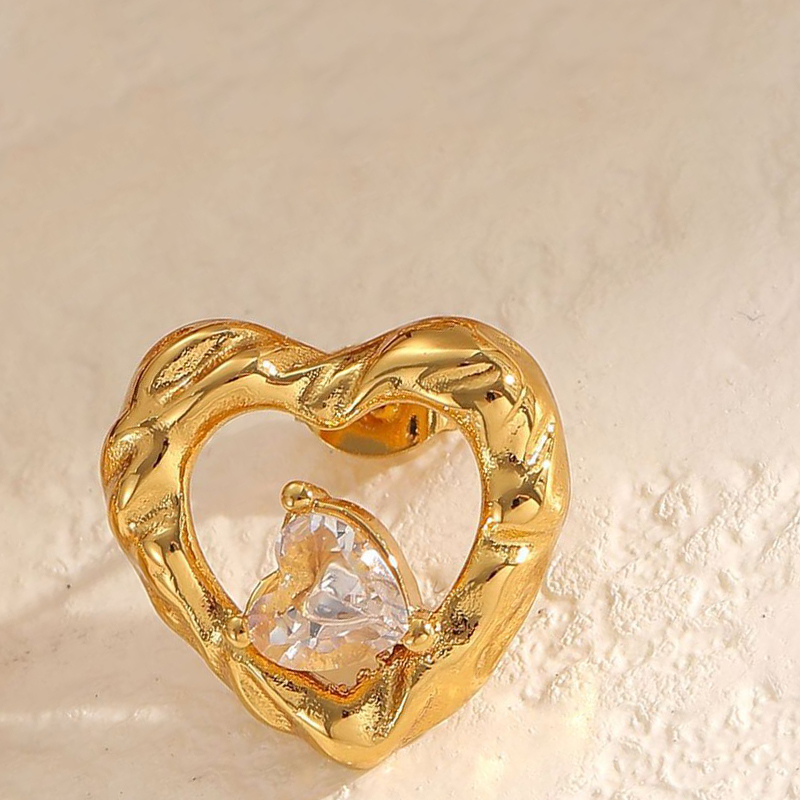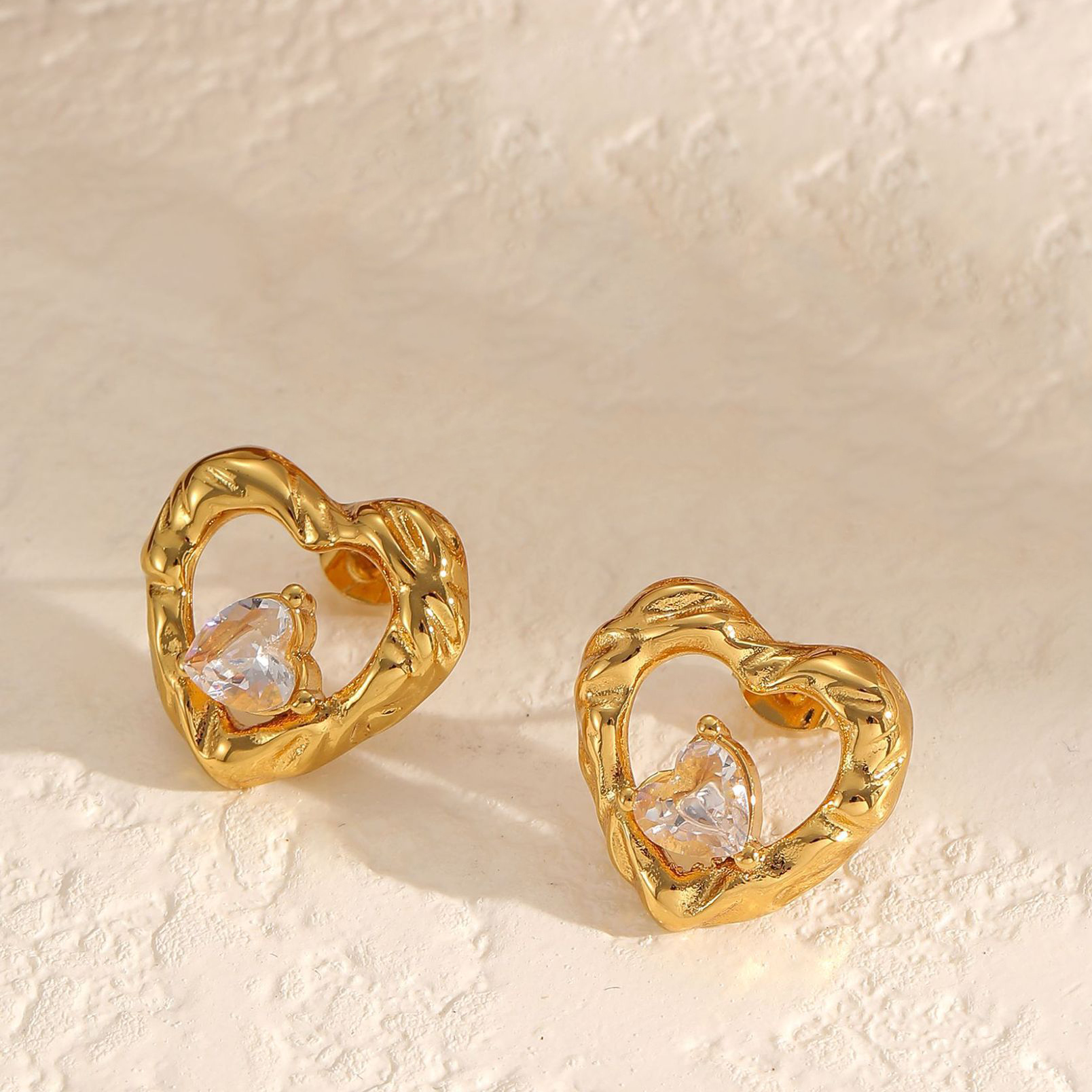 304 Edelstahl Ohrstecker, Herz, goldfarben plattiert, Micro pave Zirkonia & für Frau & hohl, 18.50x17.60mm, verkauft von Paar