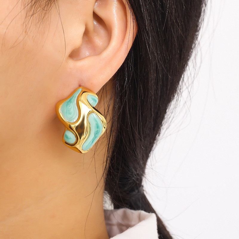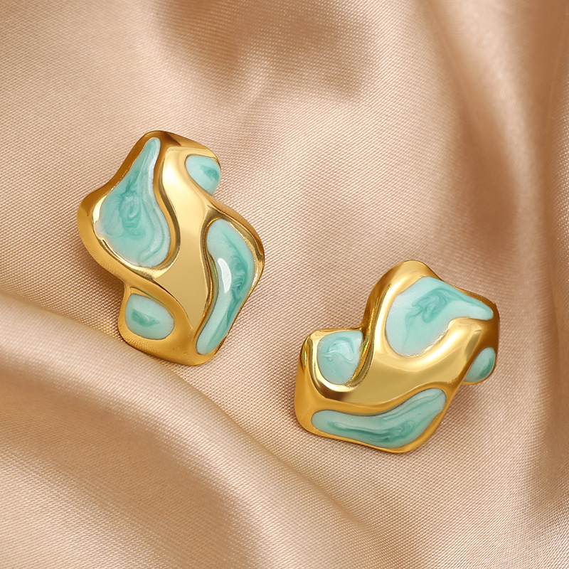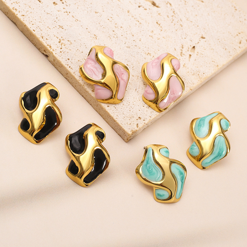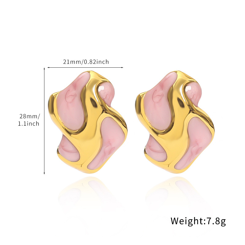 304 Edelstahl Ohrstecker, goldfarben plattiert, für Frau & Emaille, keine, 21x28mm, verkauft von Paar