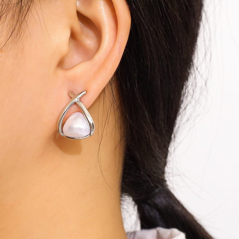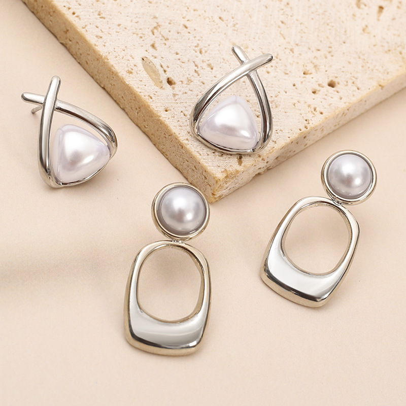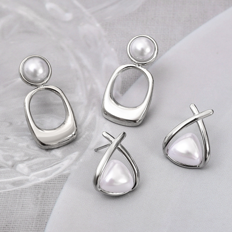 304 Edelstahl Ohrstecker, mit Kunststoff Perlen, Geometrisches Muster, Handpoliert, verschiedene Stile für Wahl & für Frau & hohl, originale Farbe, verkauft von Paar