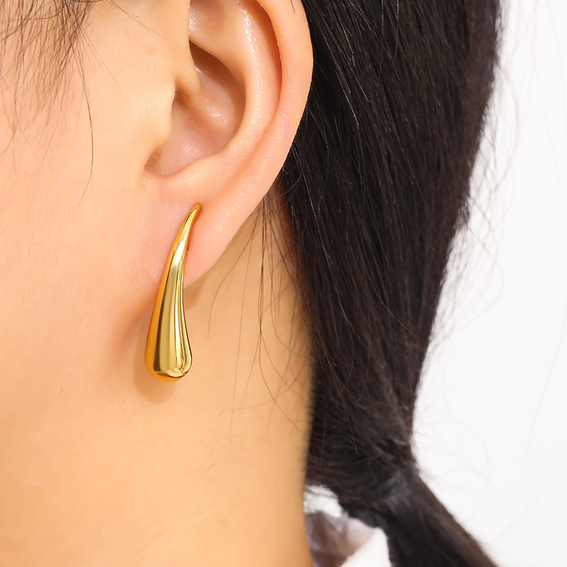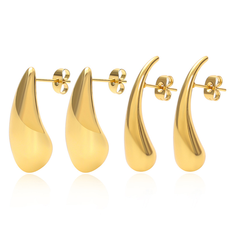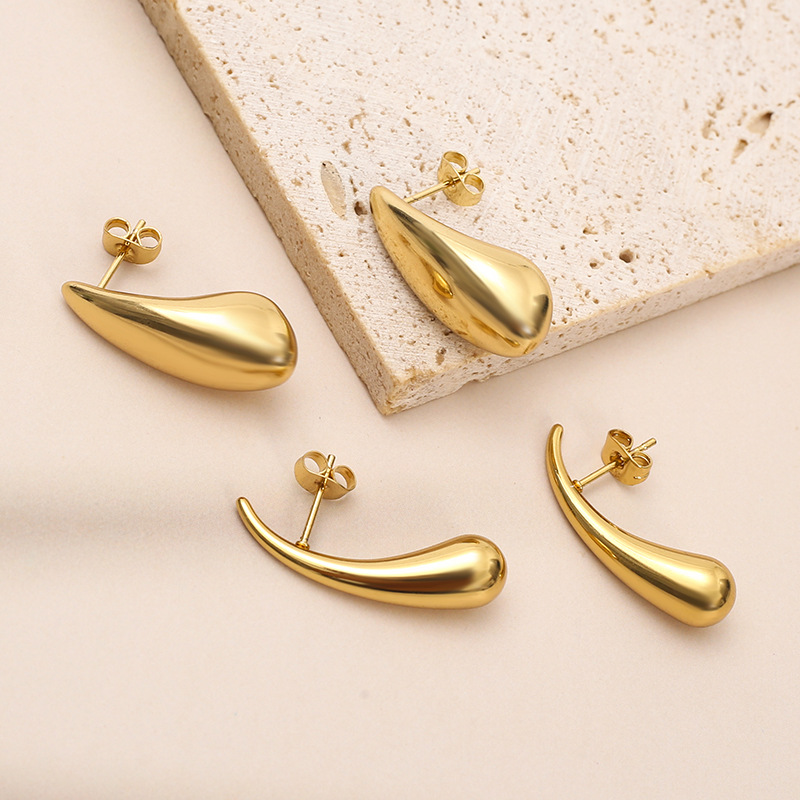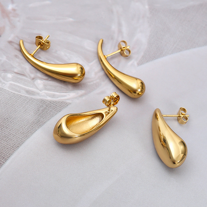 304 Edelstahl Ohrstecker, Tropfen, goldfarben plattiert, verschiedene Größen vorhanden & für Frau, verkauft von Paar