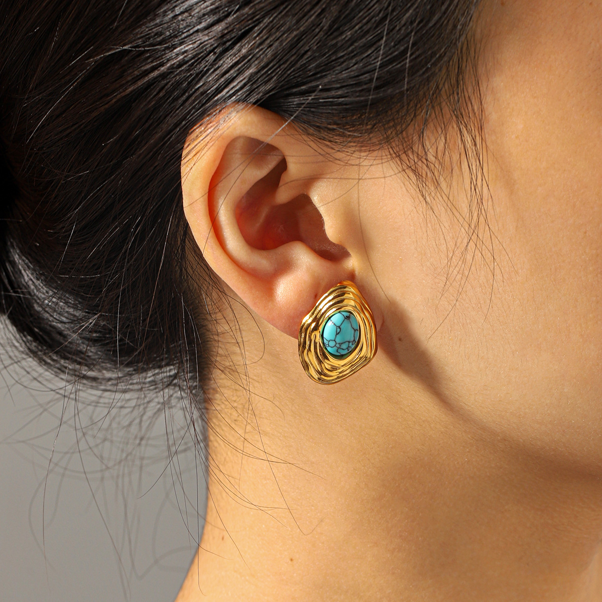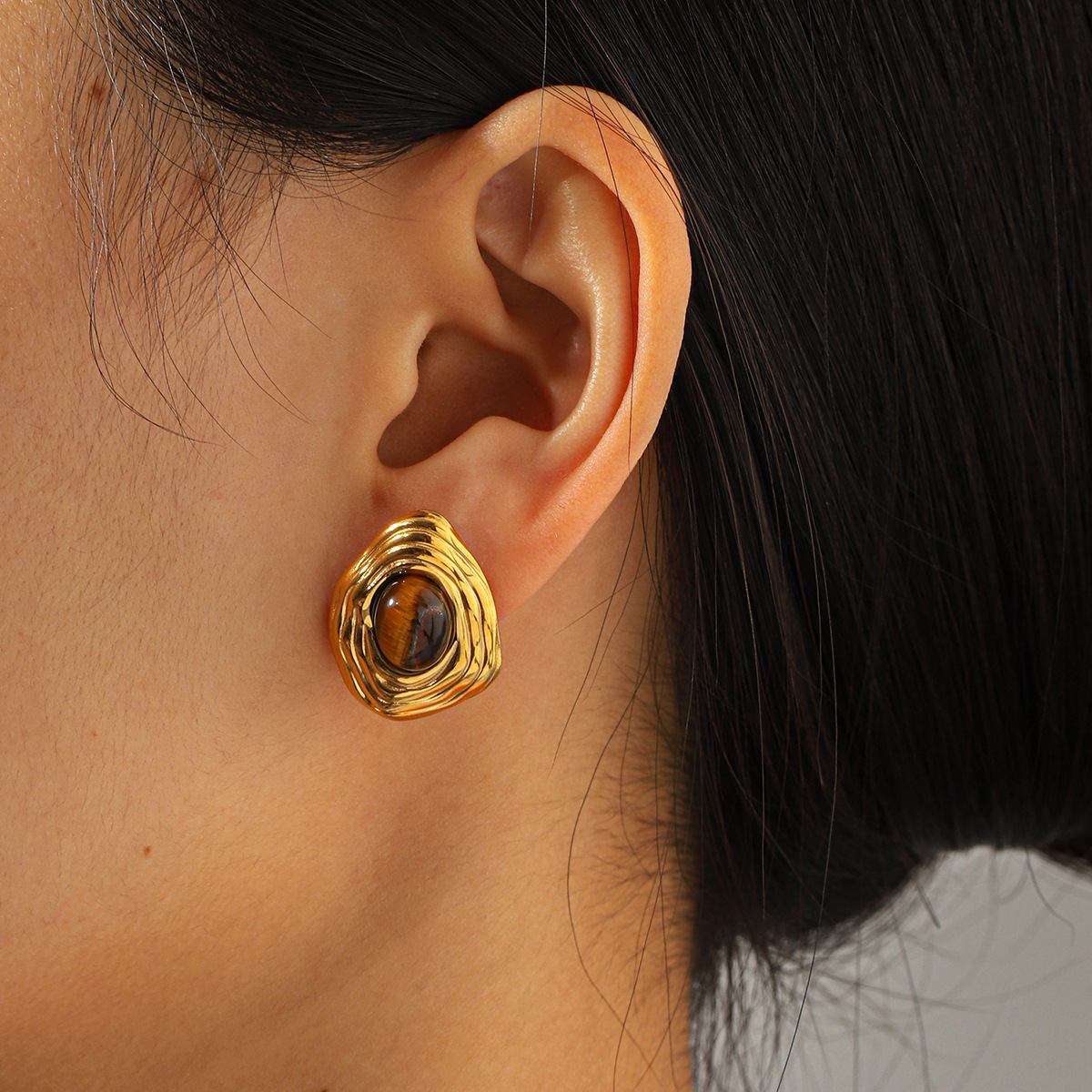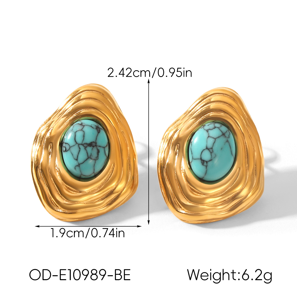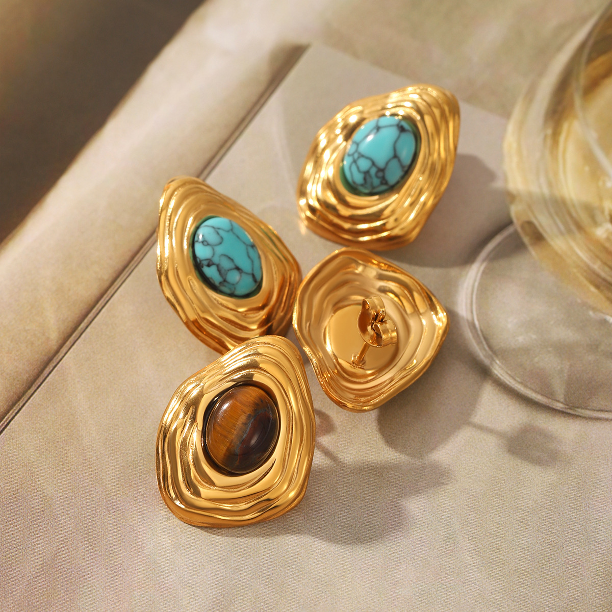 304 Edelstahl Ohrstecker, mit Türkis & Tigerauge, goldfarben plattiert, Vintage & für Frau, keine, 19x24.20mm, verkauft von Paar