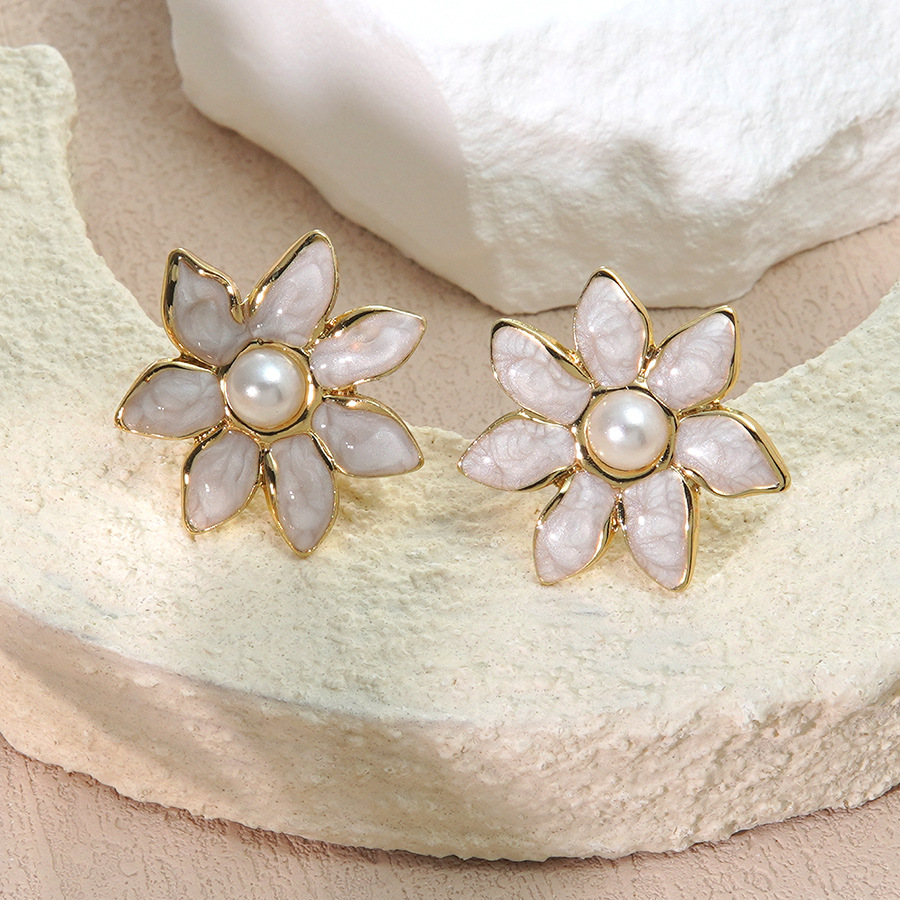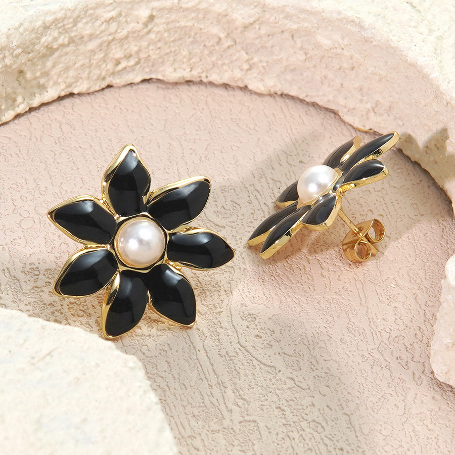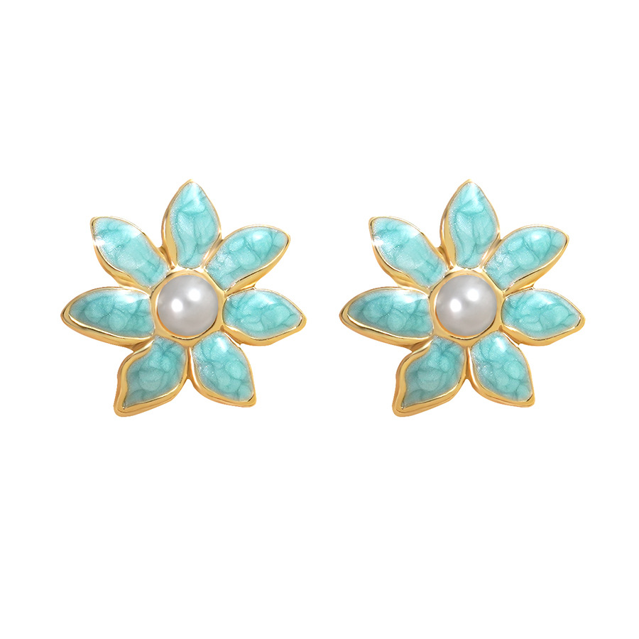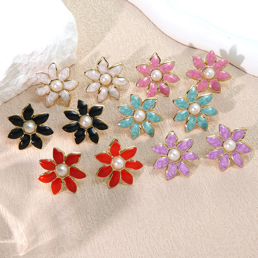 Edelstahl Ohrringe, 304 Edelstahl, Blume, plattiert, Modeschmuck & Emaille, zwei verschiedenfarbige, verkauft von Paar