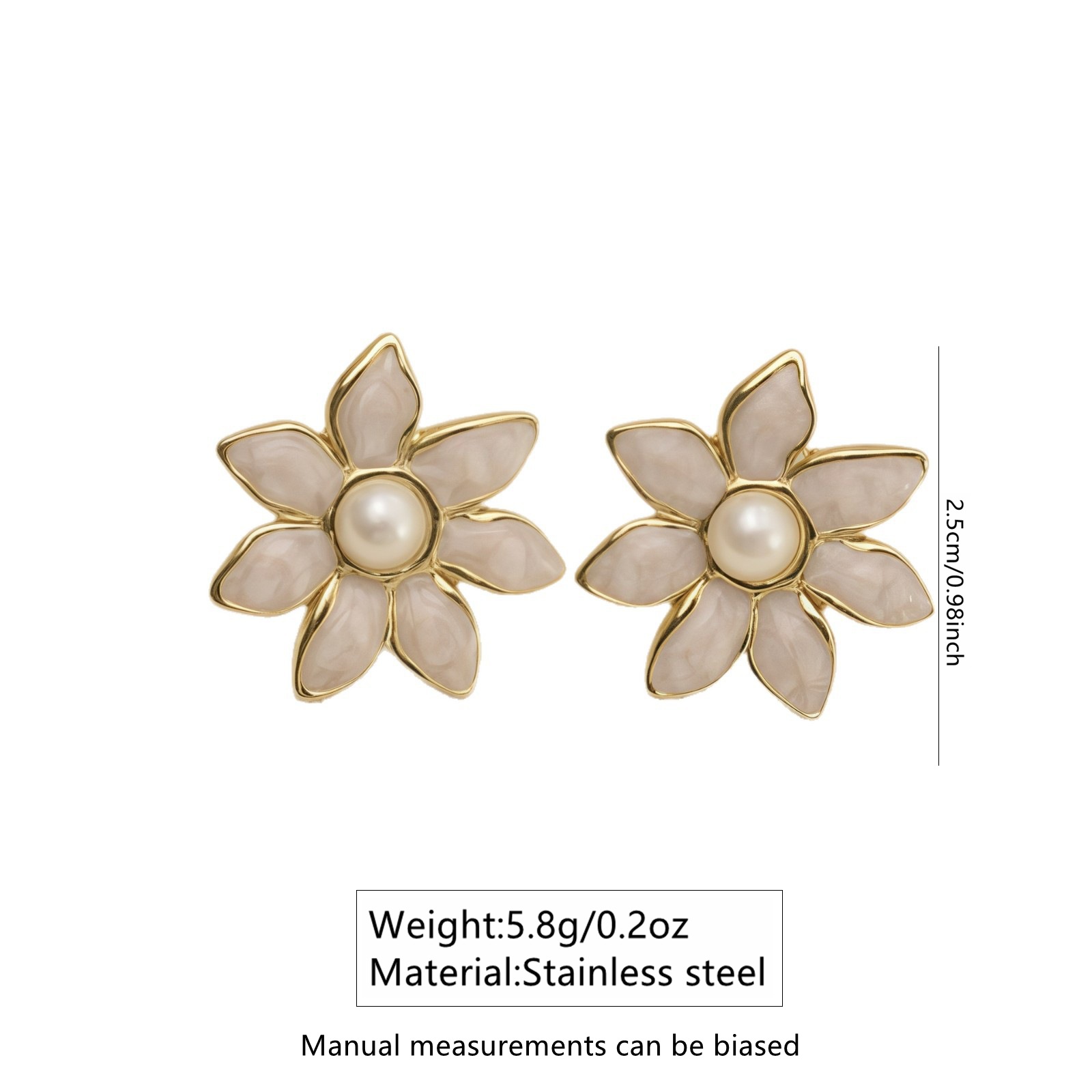 304 Edelstahl Ohrstecker, mit Kunststoff Perlen, Blume, goldfarben plattiert, für Frau & Emaille, keine, 25mm, verkauft von Paar