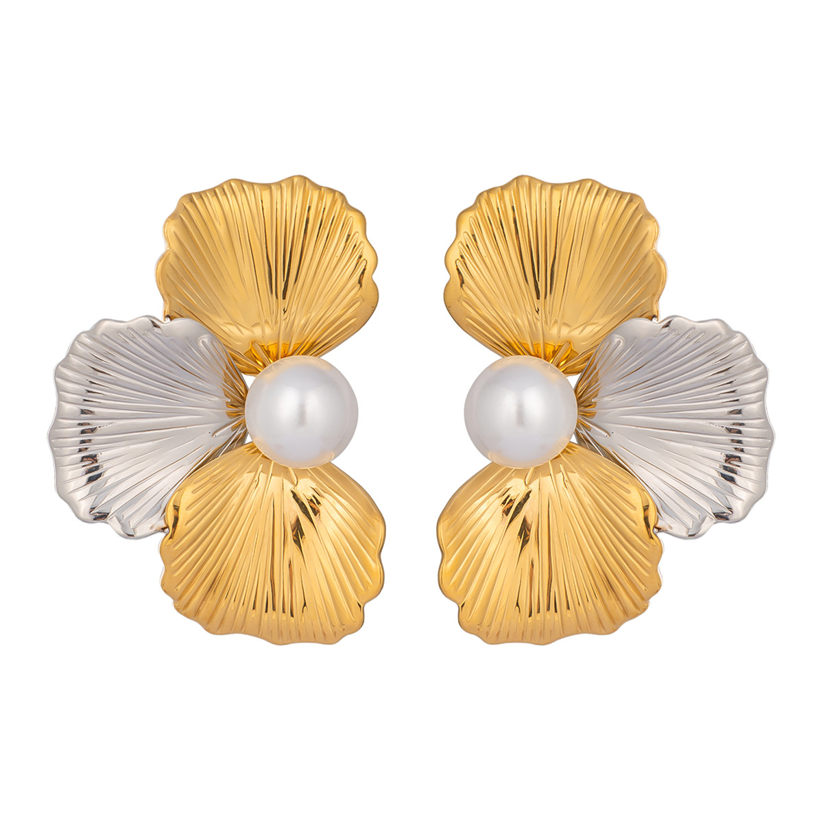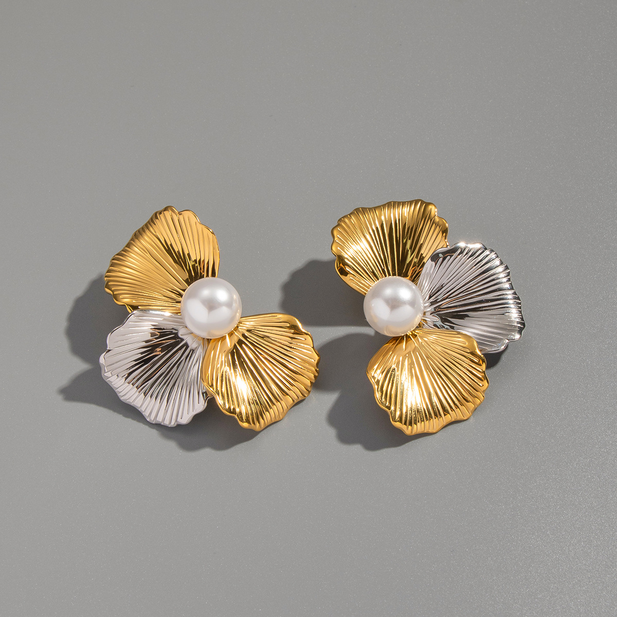 Edelstahl Ohrringe, 304 Edelstahl, Blume, plattiert, Modeschmuck & Emaille, zwei verschiedenfarbige, verkauft von Paar