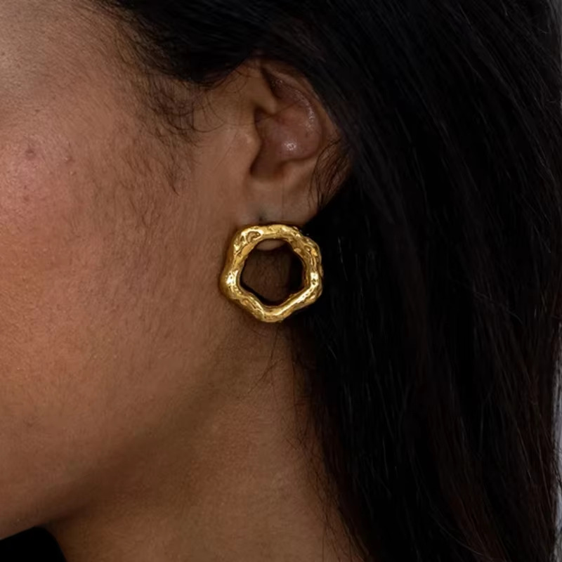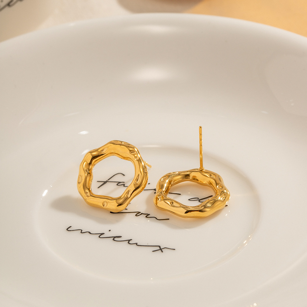 Edelstahl Ohrringe, 304 Edelstahl, plattiert, Modeschmuck & für Frau & hohl, goldfarben, verkauft von Paar