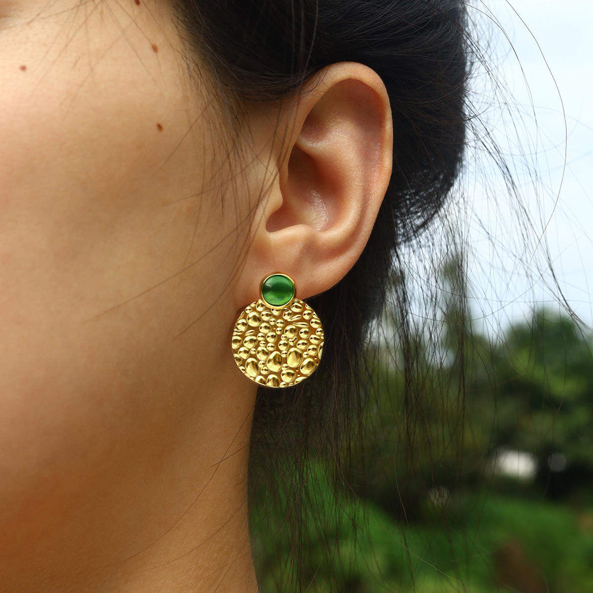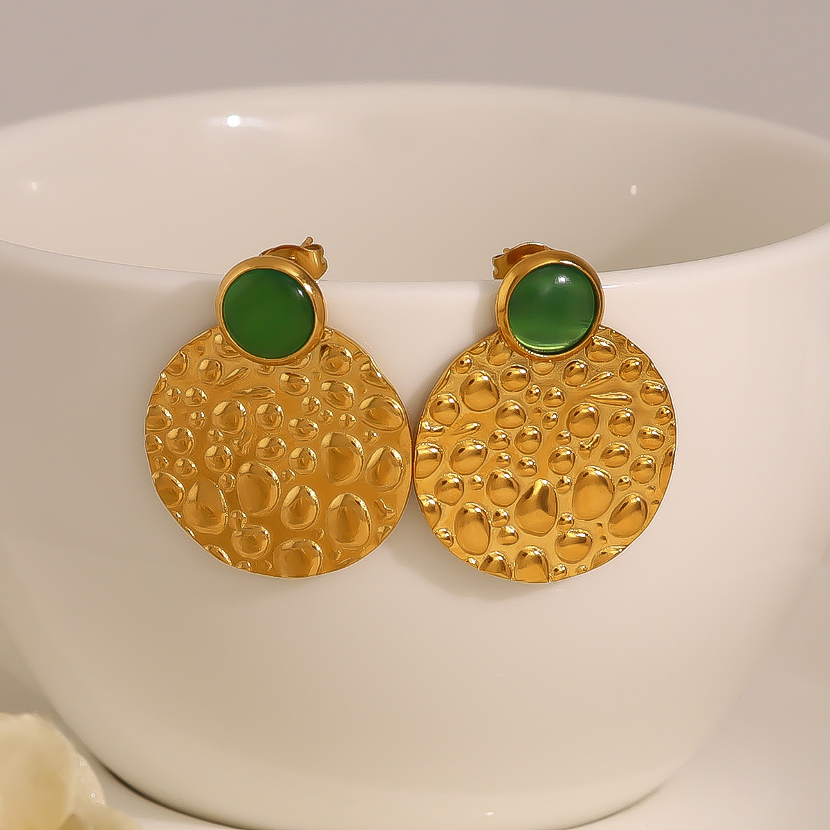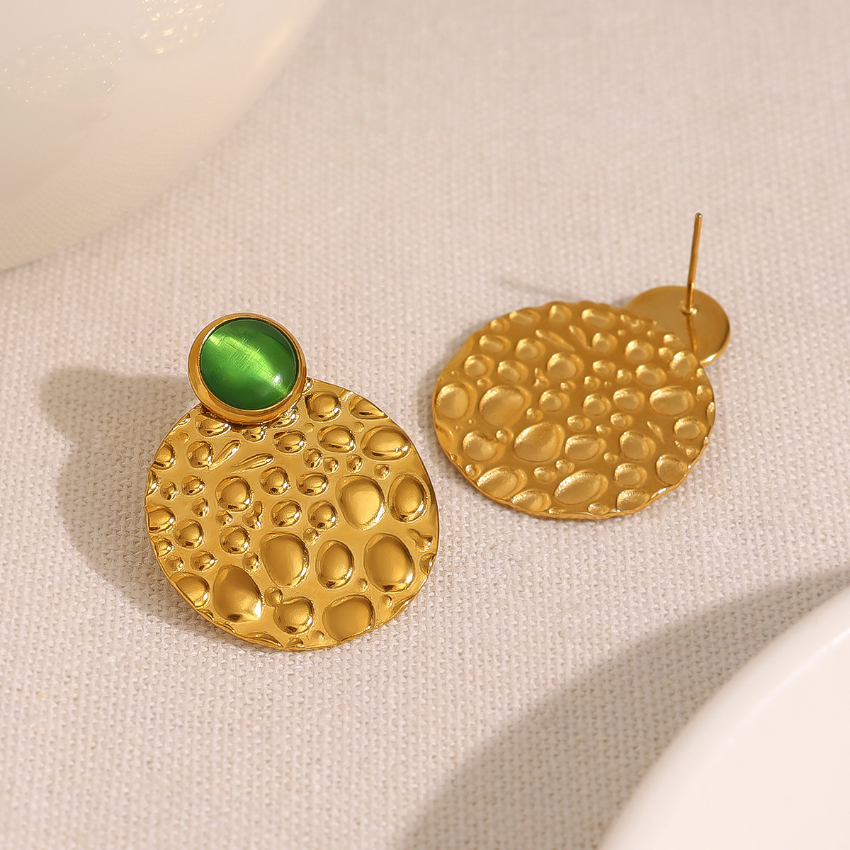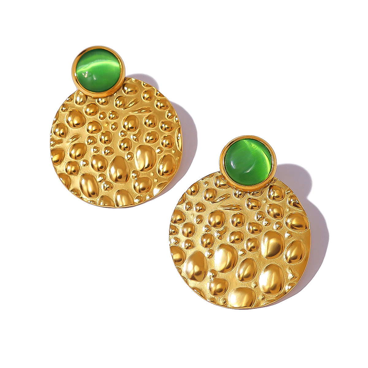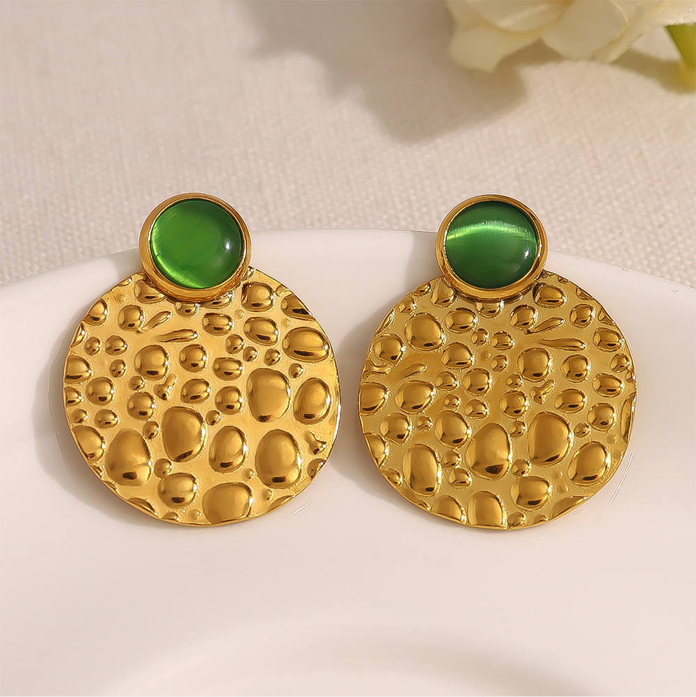 304 Edelstahl Ohrstecker, mit Katzenauge, flache Runde, goldfarben plattiert, Modeschmuck & für Frau, 24x30mm, verkauft von Paar
