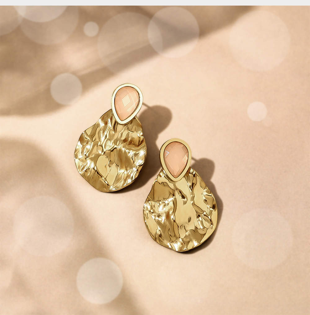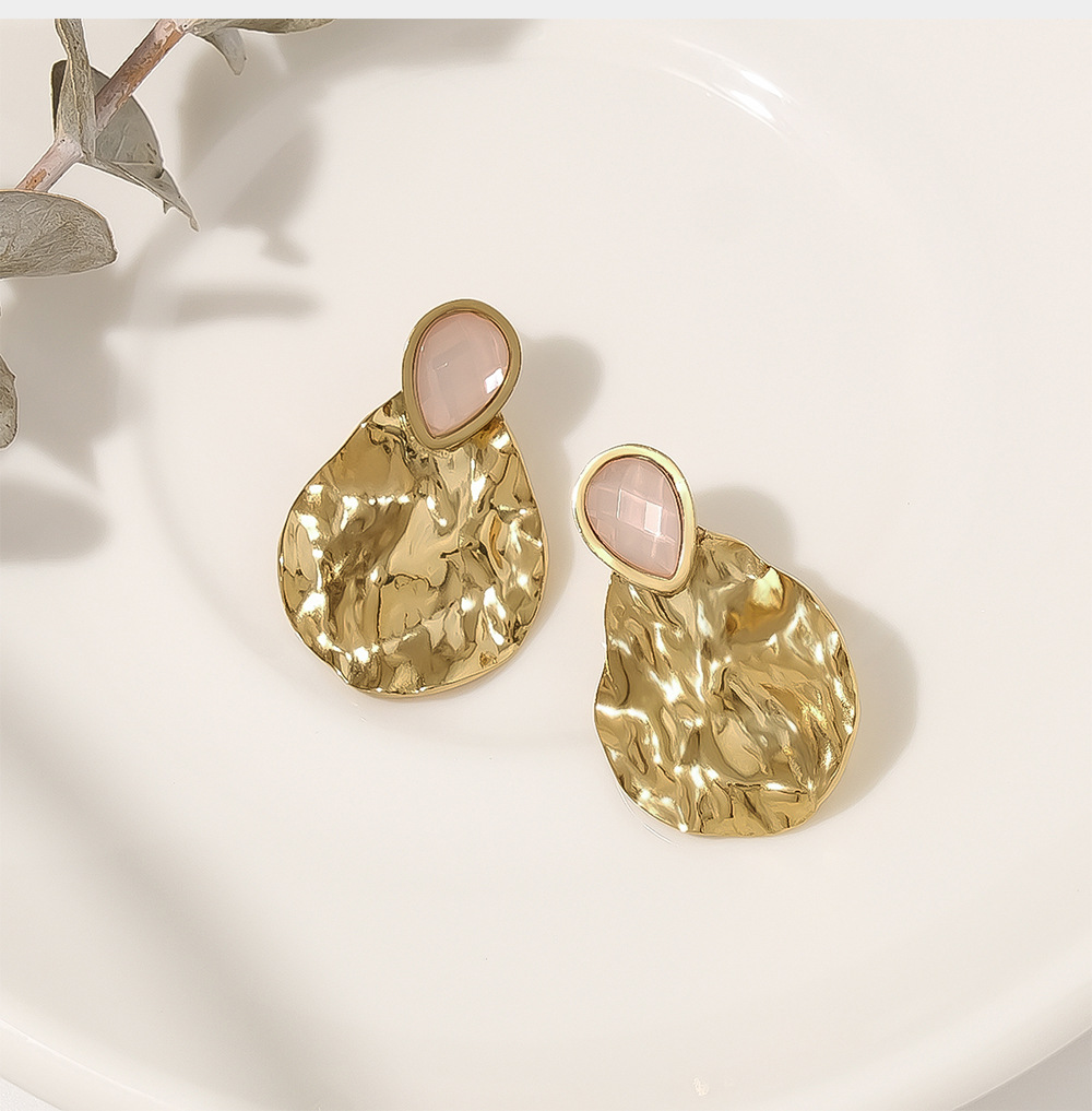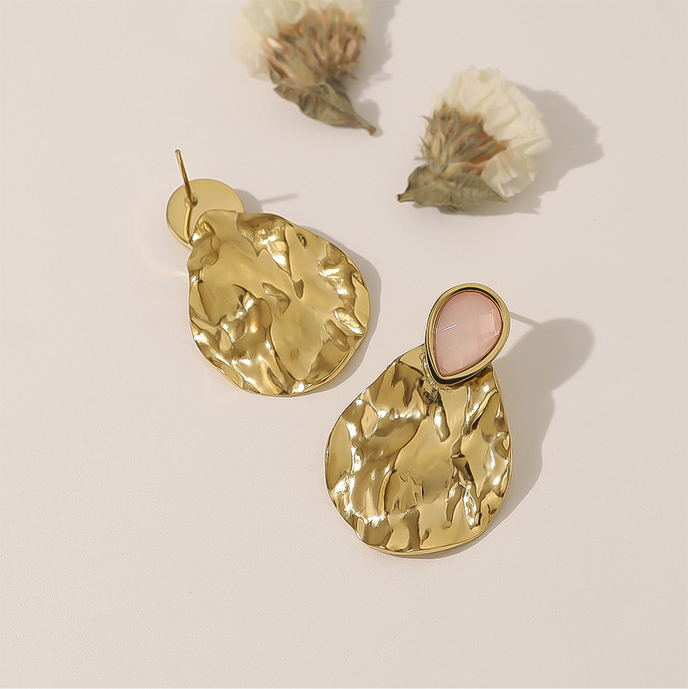 304 Edelstahl Ohrstecker, mit Rosa Aventurin, Tropfen, goldfarben plattiert, Modeschmuck & für Frau, 20.70x33.30mm, verkauft von Paar
