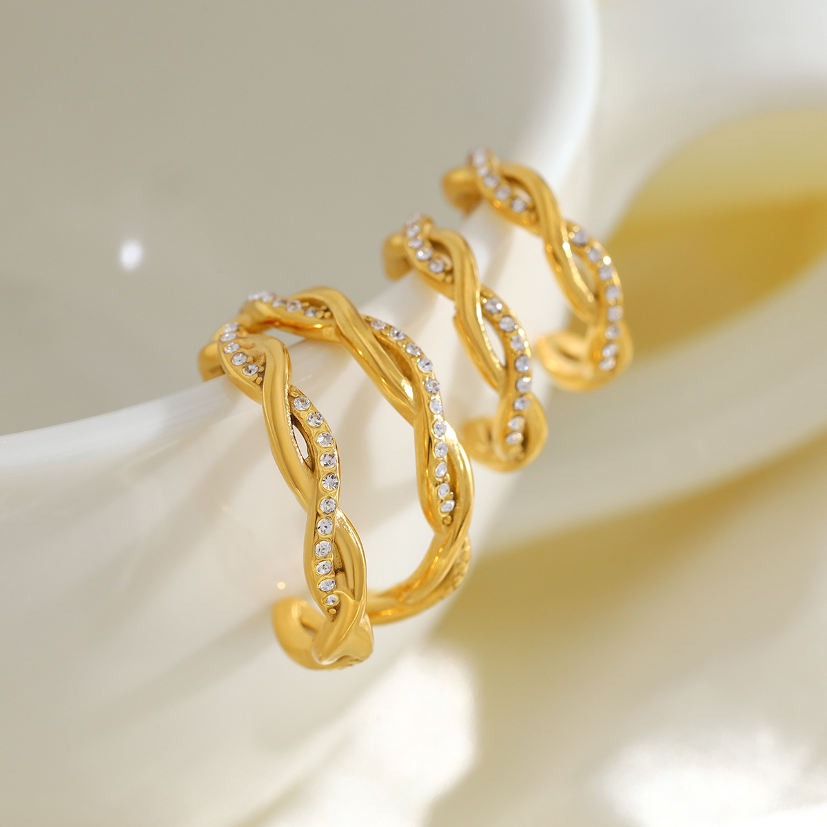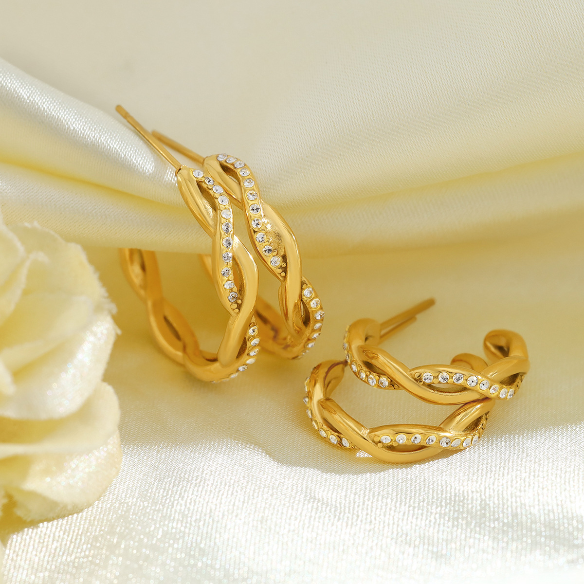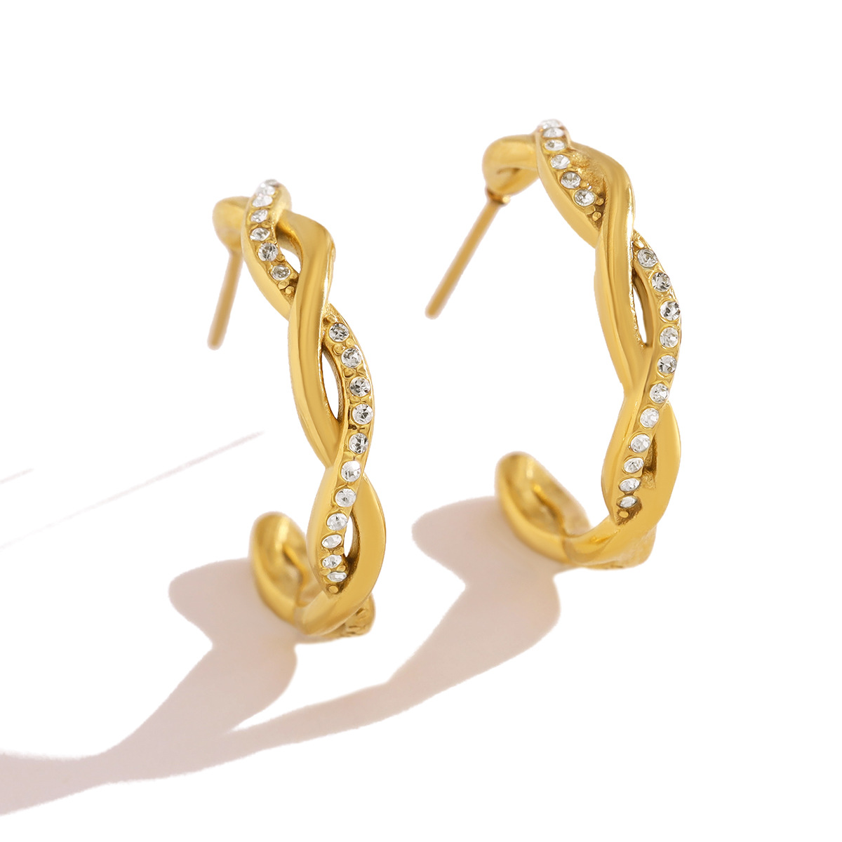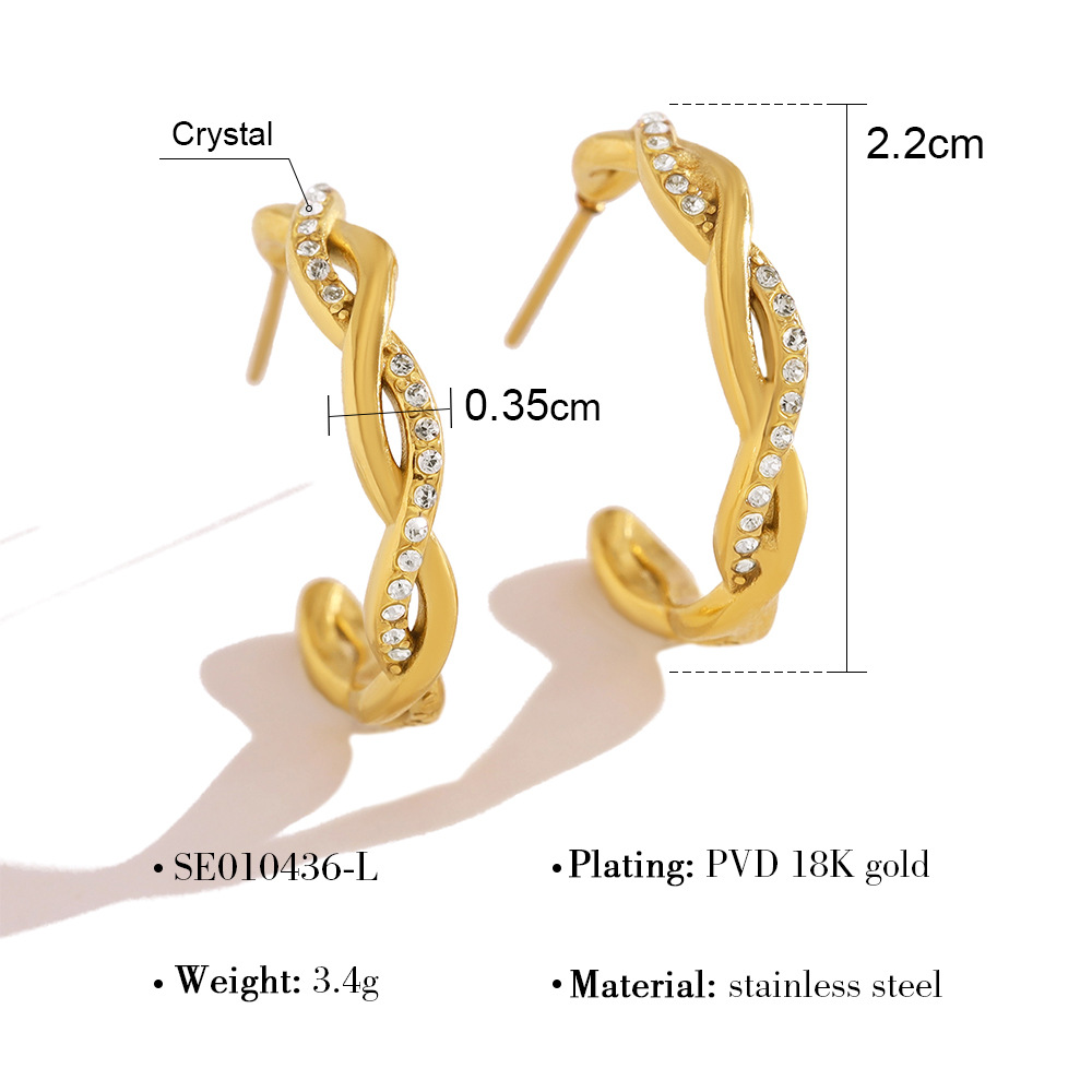 304 Edelstahl Ohrstecker, goldfarben plattiert, für Frau & mit Strass, 22mm, verkauft von Paar