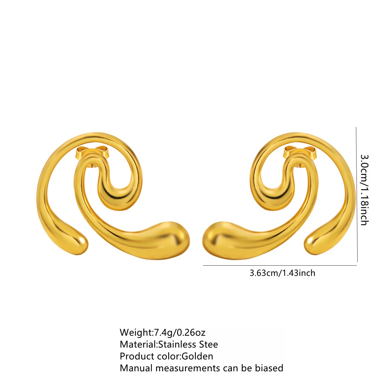Edelstahl Ohrringe, 304 Edelstahl, plattiert, Modeschmuck & für Frau & hohl, goldfarben, verkauft von Paar