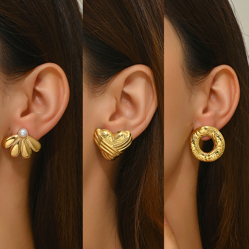 Edelstahl Ohrringe, 304 Edelstahl, plattiert, Modeschmuck & für Frau & hohl, goldfarben, verkauft von Paar