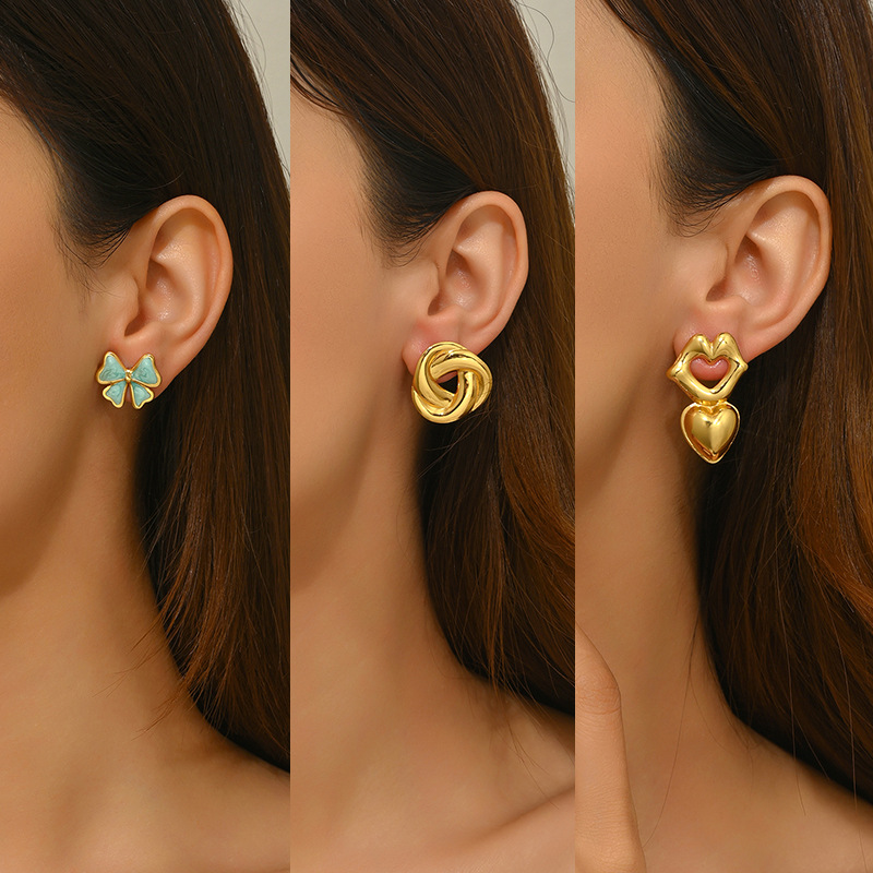 304 Edelstahl Ohrstecker, goldfarben plattiert, verschiedene Stile für Wahl & für Frau & Emaille, verkauft von Paar