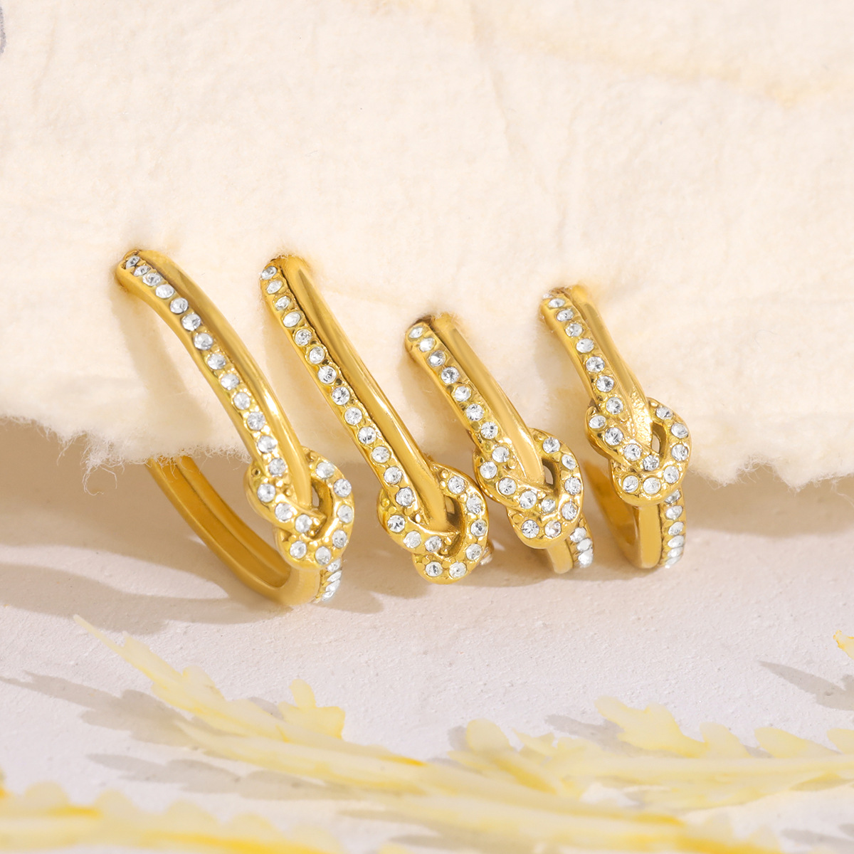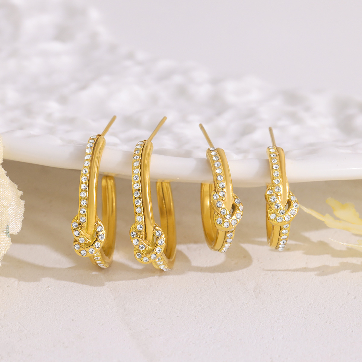 304 Edelstahl Ohrstecker, goldfarben plattiert, verschiedene Größen vorhanden & für Frau & mit Strass, verkauft von Paar