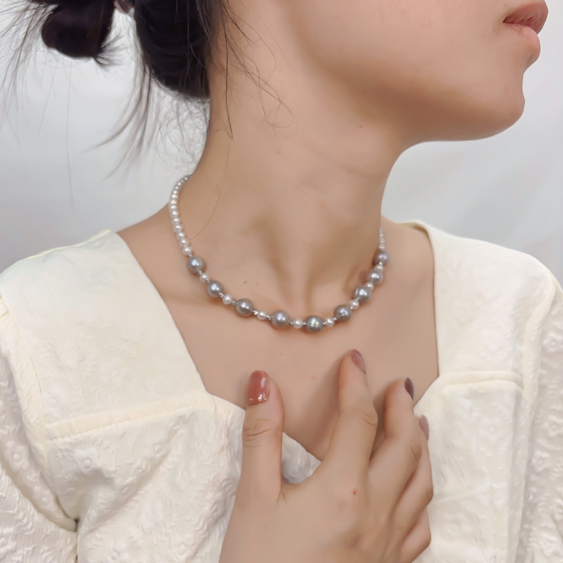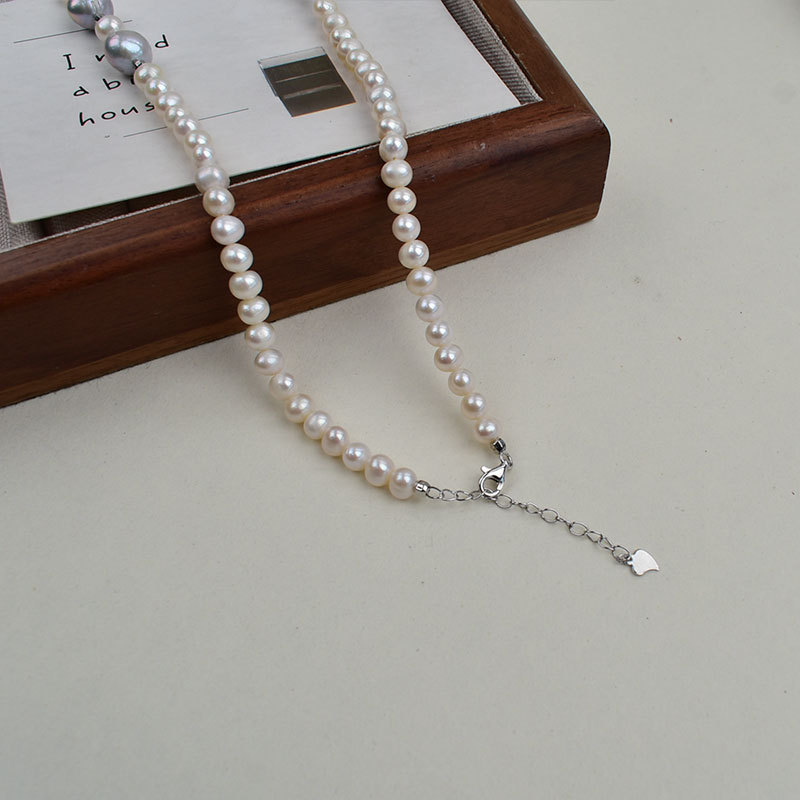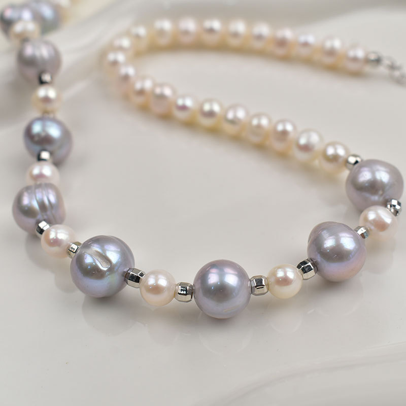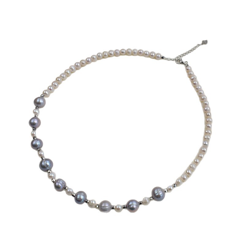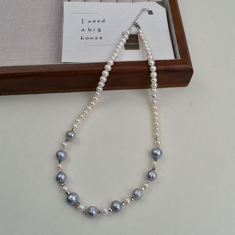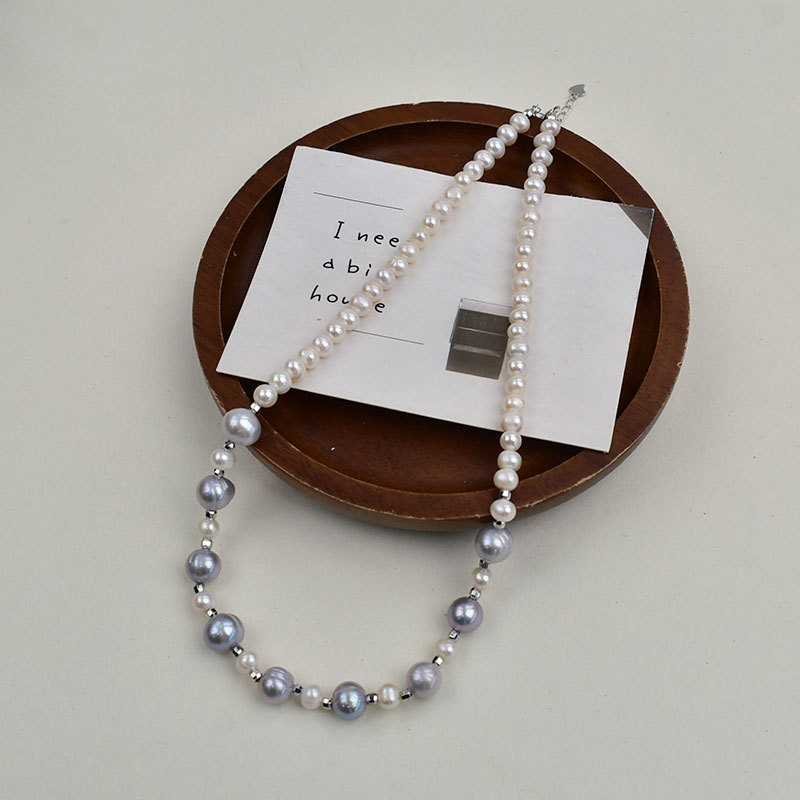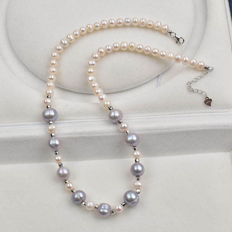 925 Sterling Silber Perlen Halskette, Natürliche kultivierte Süßwasserperlen, mit 925 Sterling Silber, Kartoffel, silberfarben plattiert, DIY, grau, 9x10mm, verkauft von Strang