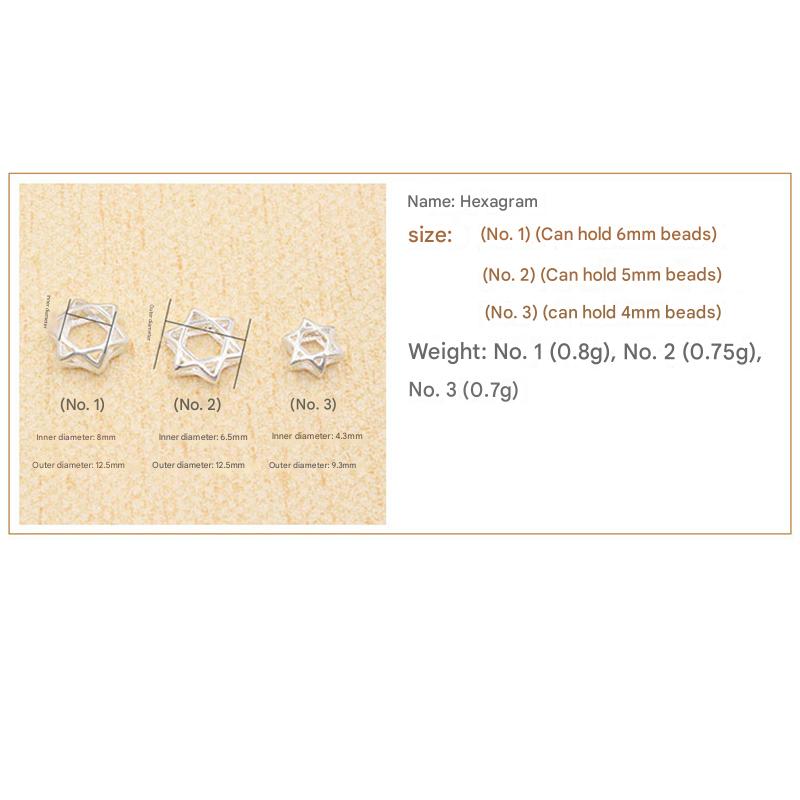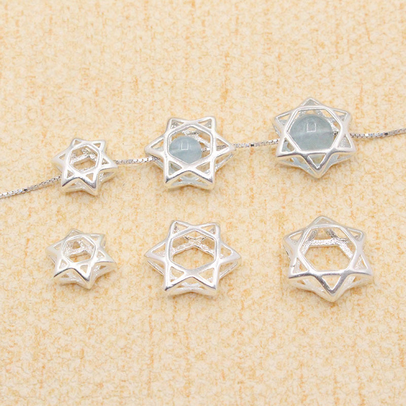 925 Sterling Silber Perlen, 925er Sterling Silber, Hexagram, DIY & verschiedene Größen vorhanden & hohl, Silberfarbe, verkauft von PC
